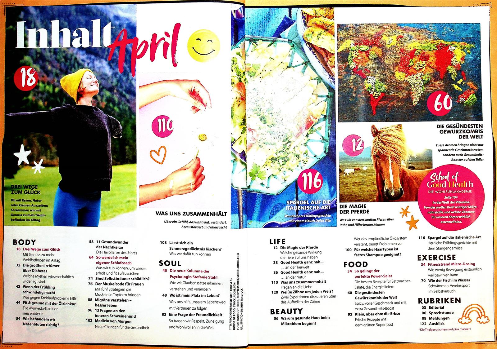 Besonders an Good Health ist die frische und emotionale Aufmachung. Gesundheitsthemen werden hier stets mit einer gehörigen Prise Lebensfreude gewürzt.