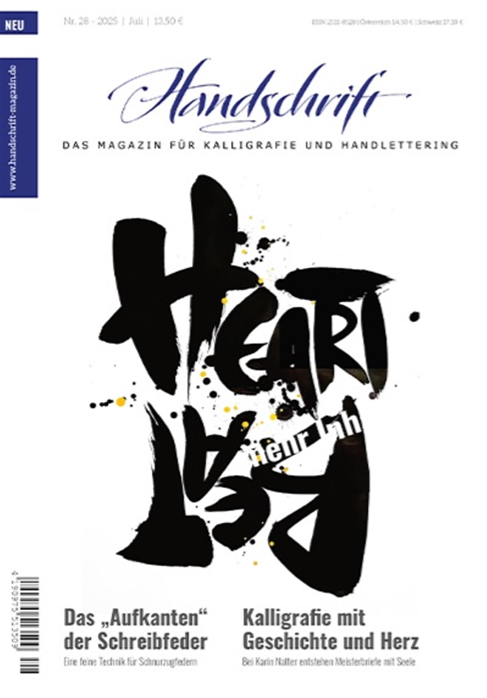 Die Handschrift ist das führende und einzige Magazin für Kalligrafie und Handlettering. Es bringt Kreativität auf den Punkt und schafft mit innovativen, inspirierenden Artikeln einmalige Erlebnisse. Die Inhalte sind breit gefächert und richten sich an alle Kalligrafie- und Handletteringinteressierte.