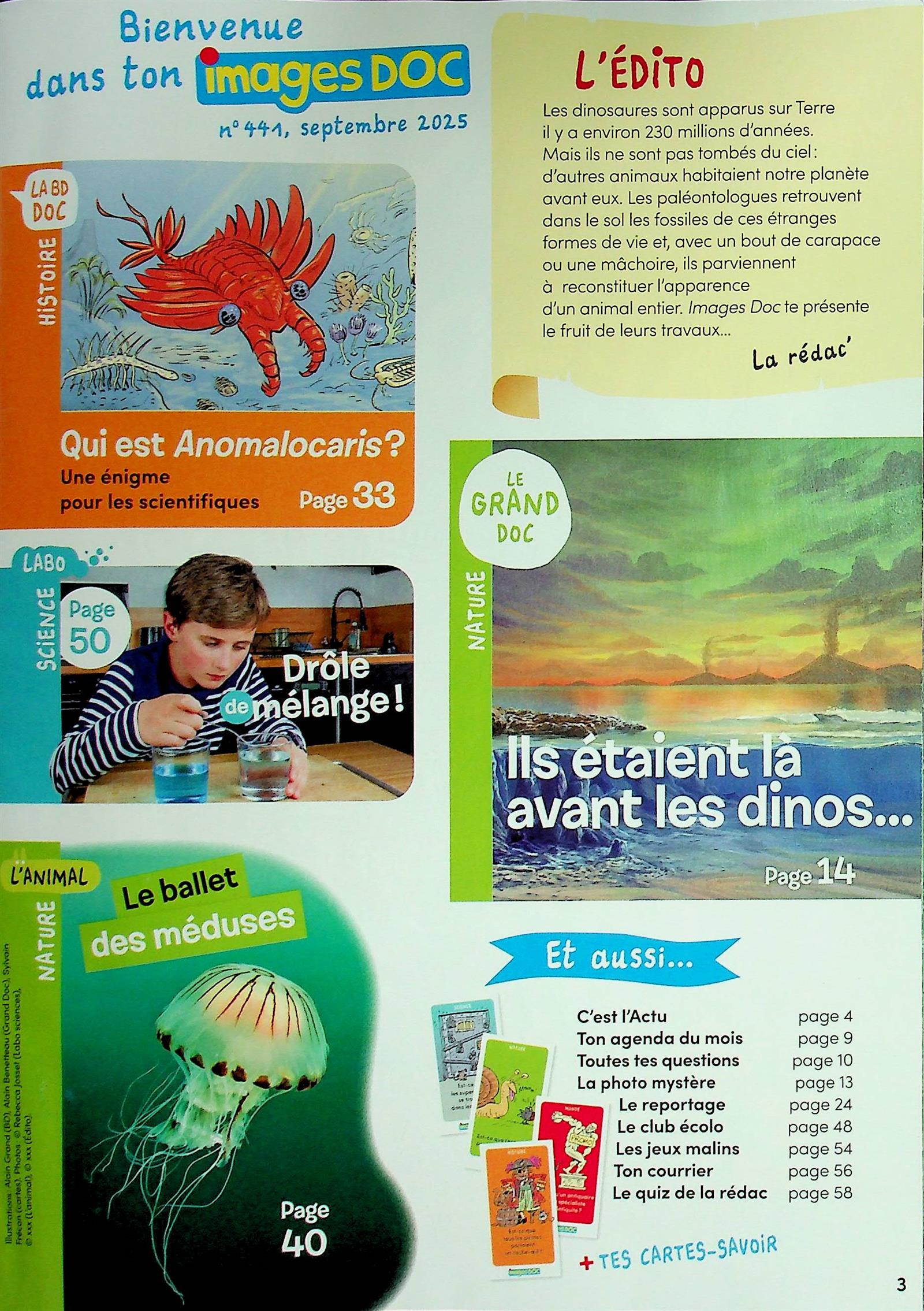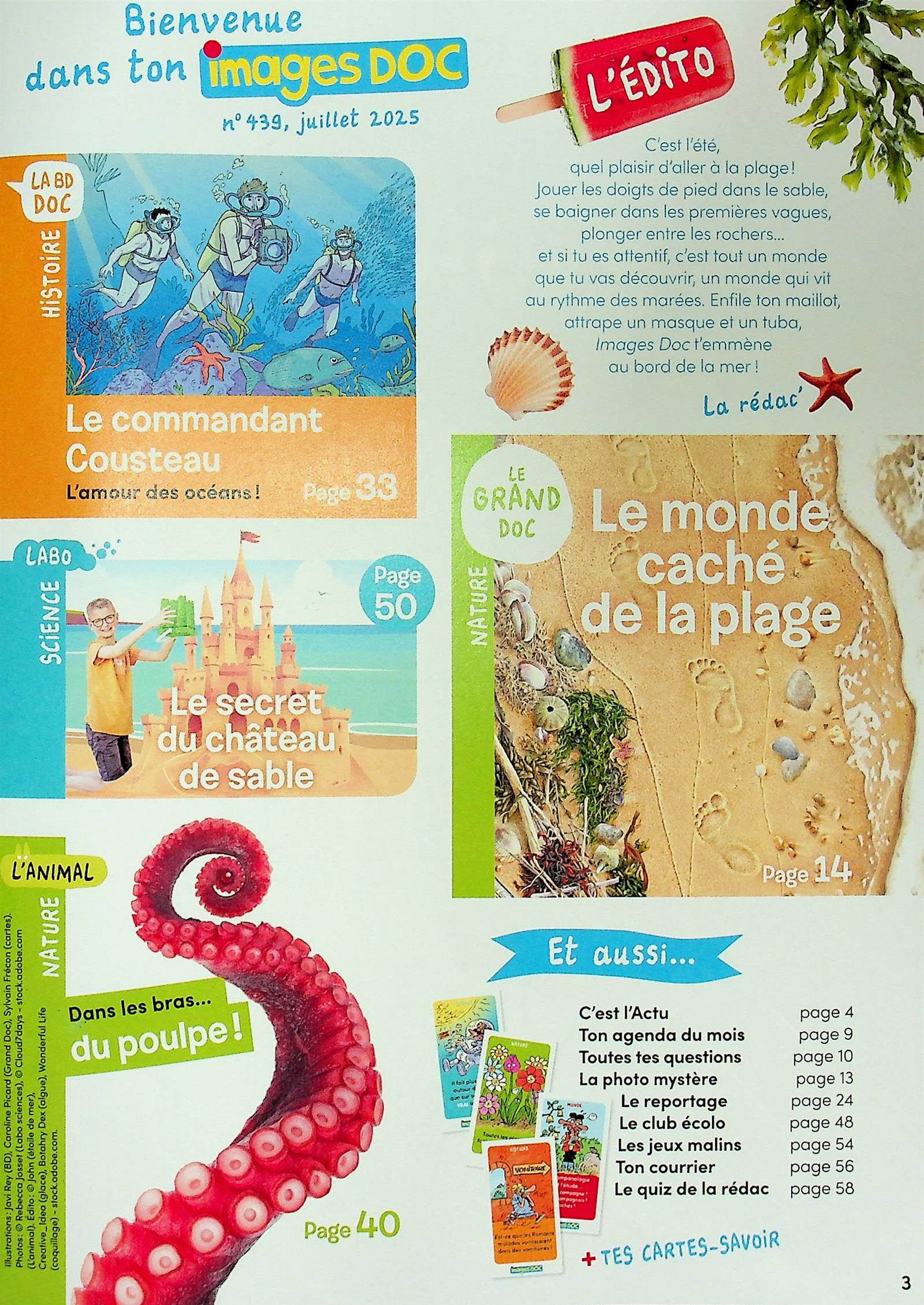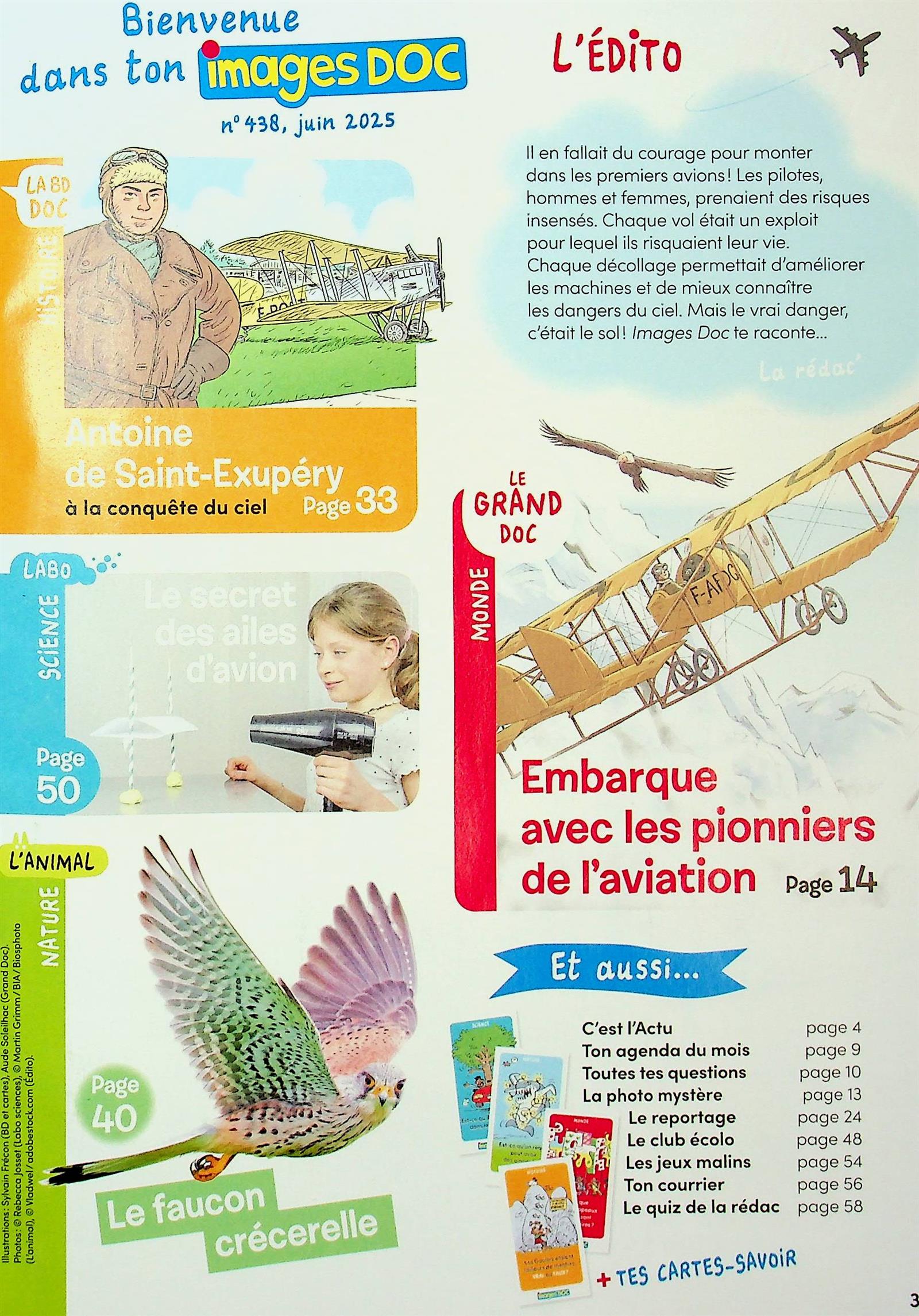 Wissenschaft, Natur, Geschichte… Das französische Dokuheft Images Doc richtet sich an neugierige Kinder von 8 bis 12 Jahren, zur privaten Lektüre bei vorhandenen muttersprachlichen Kenntnissen oder zur Verwendung in der Schule, zum Beispiel im Sprachunterricht. In jeder Ausgabe wird ein großes Thema schwerpunktmäßig behandelt, ein besonderes, geschichtliches Ereignis in Comic-Form dargestellt, ein Tier und seine Lebensgewohnheiten in einer Foto-Doku präsentiert, und verschiedene Wissenschaftsexperimente zum Nachmachen empfohlen. Zudem bringt jede Ausgabe eine schöne Überraschung: Poster, Pläne zum Aufklappen, Beihefter zum Mitnehmen…