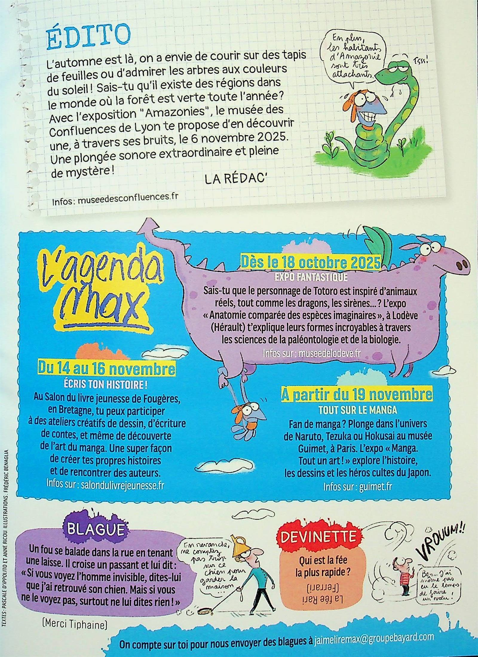 Mit J'aime lire Max erweitern Kinder spielerisch ihr Wissen! Dieses Magazin ist eine wahre Fundgrube an Informationen. Im Mittelpunkt der monatlichen Ausgabe steht ein illustrierter, echter Roman, der zum Teil selbst für Erwachsene recht spannend ist – für Kinder erst recht. Junge Leser werden mit dem Genre des Romans konfrontiert und daß Ihre Kinder später zu Leseratten werden, ist nach diesem Start nicht unwahrscheinlich. Je nach Ausgabe geht es in dem Roman um Abenteuer, Humor oder um einen spannenden Krimi.