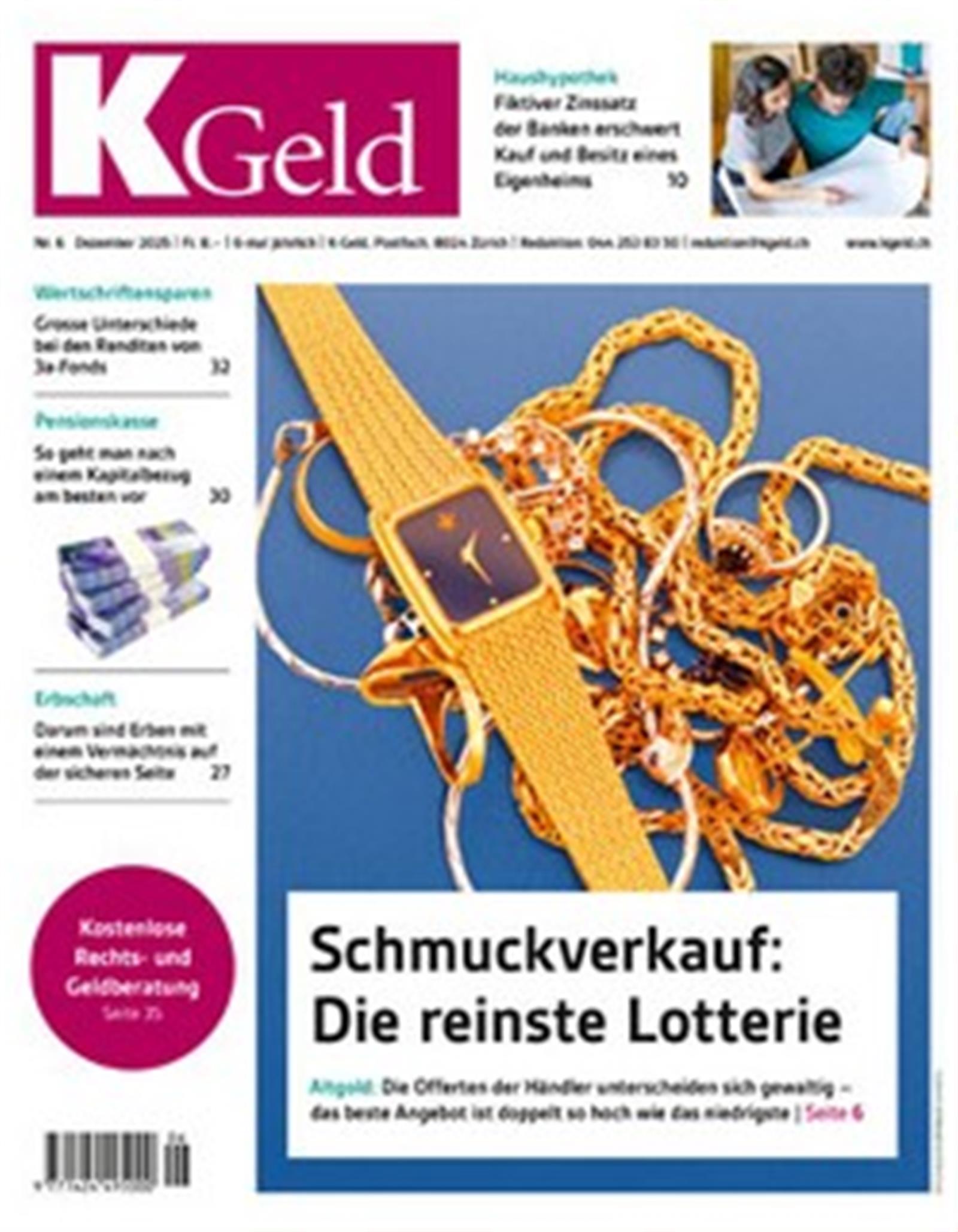 K-Geld ist ein Konsumentenmagazin der Schweiz, das sich mit dem Thema Geld beschäftigt. Neben ausführlichen Testberichten zu Geldanlagen werden aktuelle Informationen präsentiert. Ziel des Magazins ist es alle Konsumenten mit ausführlichen Berichten zu informieren. Deshalb arbeiten sie nicht gewinnorientiert sondern geben das Magazin zum Selbstkostenpreis heraus. Das Magazin fungiert darüber hinaus als Ratgeber für Verbraucherthemen wie Versicherungen, Immobilien, Erben, Vorsorge und Steuern und bietet ausführliches Hintergrundwissen.