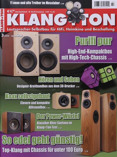 Klang & Ton ist ein großartiges Magazin zum Selbermachen von Lautsprechern. Das langjährige Musikmagazin ist ein Vorreiter auf diesem speziellen Bereich. Neben Anleitungen zum Bau von Lautsprechern für jedes Budget werden zahlreiche Themen angeboten, von Bezugsquellen für Lautsprecher bis hin zu Testberichten über Elektronikbausätze.