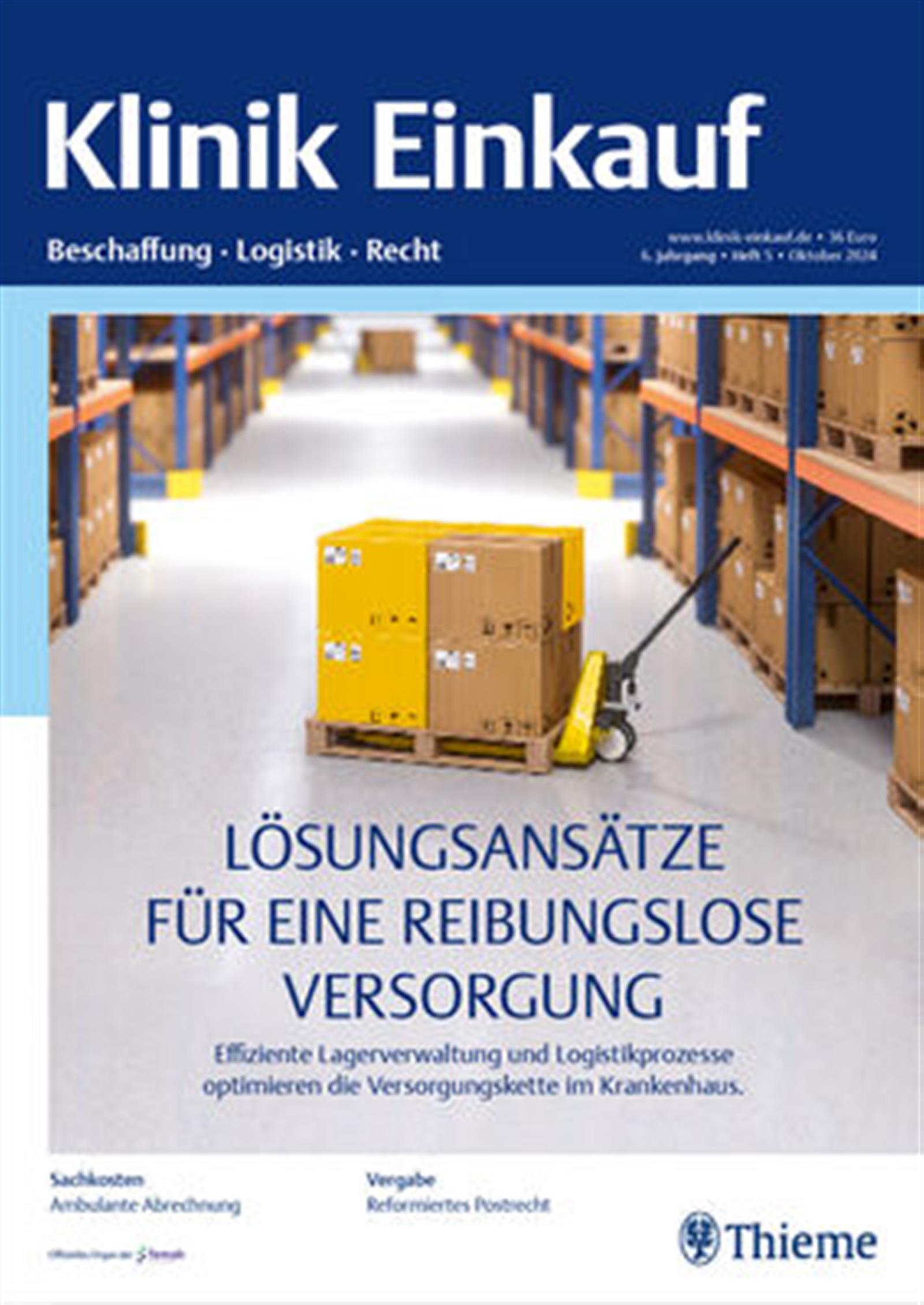 Klinik Einkauf ist das erste und einzige Magazin für Klinikeinkäufer, Logistiker und Entscheider im Beschaffungsprozess. Es bietet Fachbeiträge, Praxisbeispiele und aktuelle Produkt und Brancheninformationen sowie Informationen zu rechtlichen und politischen Rahmenbedingungen. Damit werden nachhaltig alle relevanten Themen des Beschaffungsmanagements abgedeckt.