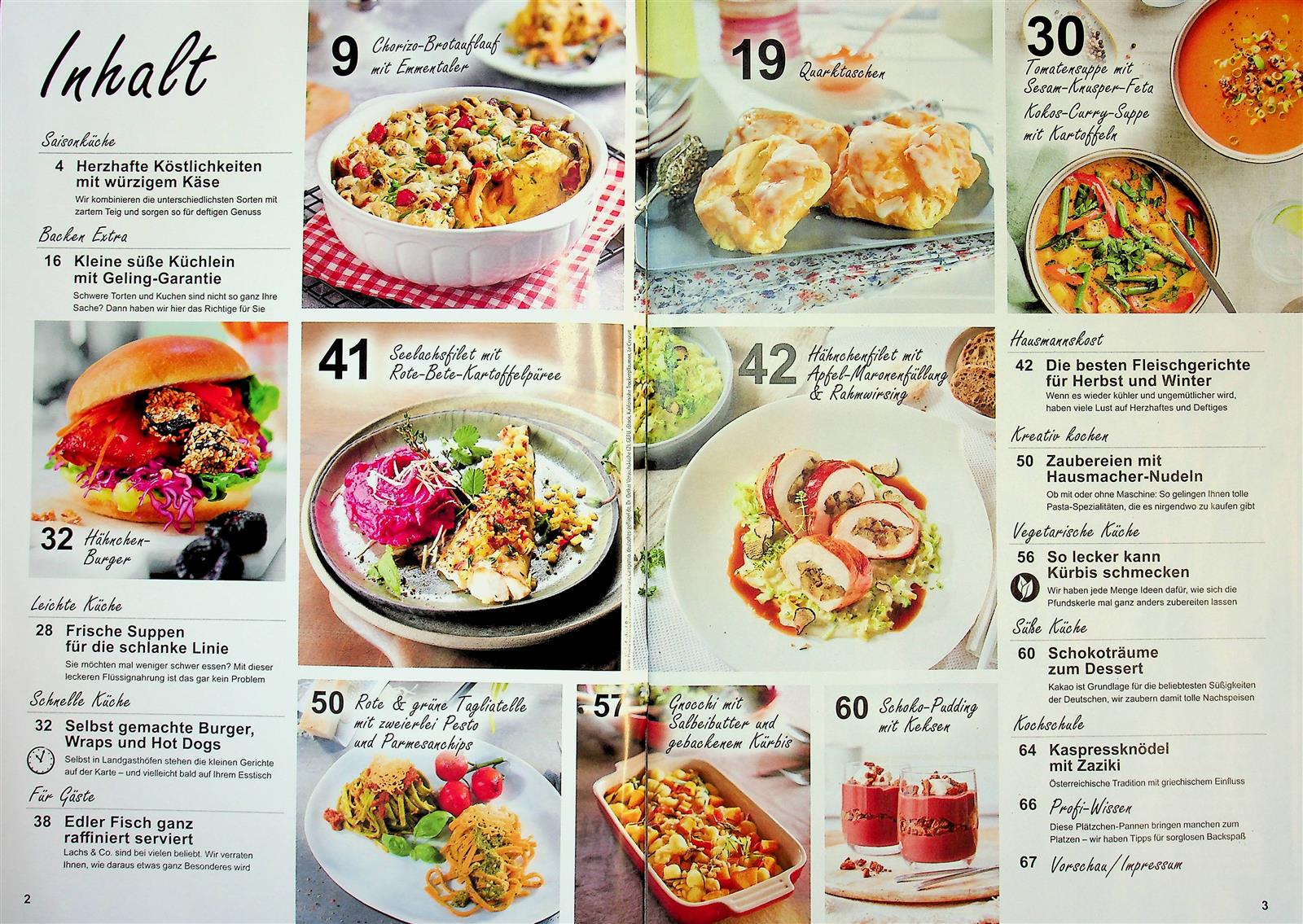 Genuss für zu Hause wie im Lieblingsrestaurant ist das Motto des Kochmagazins Köstliche Landhausküche, das mit leckeren, bodenständigen Rezepten mit besten Zutaten daherkommt. Eine Sammlung an traditionellen Rezepten mit dem gewissen Etwas, das aus den Gerichten mehr als nur Alltagsküche macht, und mit dem richtigen Maß zwischen Machbarkeit und Besonderem. In jeder Ausgabe gibt es neben saisonalen Gerichten und schneller Küche noch ein Schwerpunktthema (Brot, Alpenküche, Snacks…) und das unverzichtbare Backen-Extra, da zu einem guten Essen auch der perfekte Nachtisch gehört.