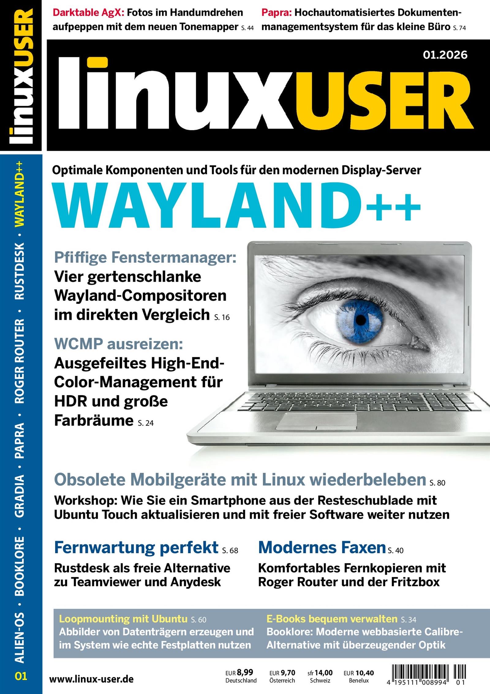 Linux User ist das monatliche Anwender-Magazin für den Linux-Alltag im privaten Einsatz. Das Magazin liefert Anwendern mit praxisorientierten Artikeln, Workshops und Tests direkt nachvollziehbare Ideen für den Einsatz von Linux und Open Source.