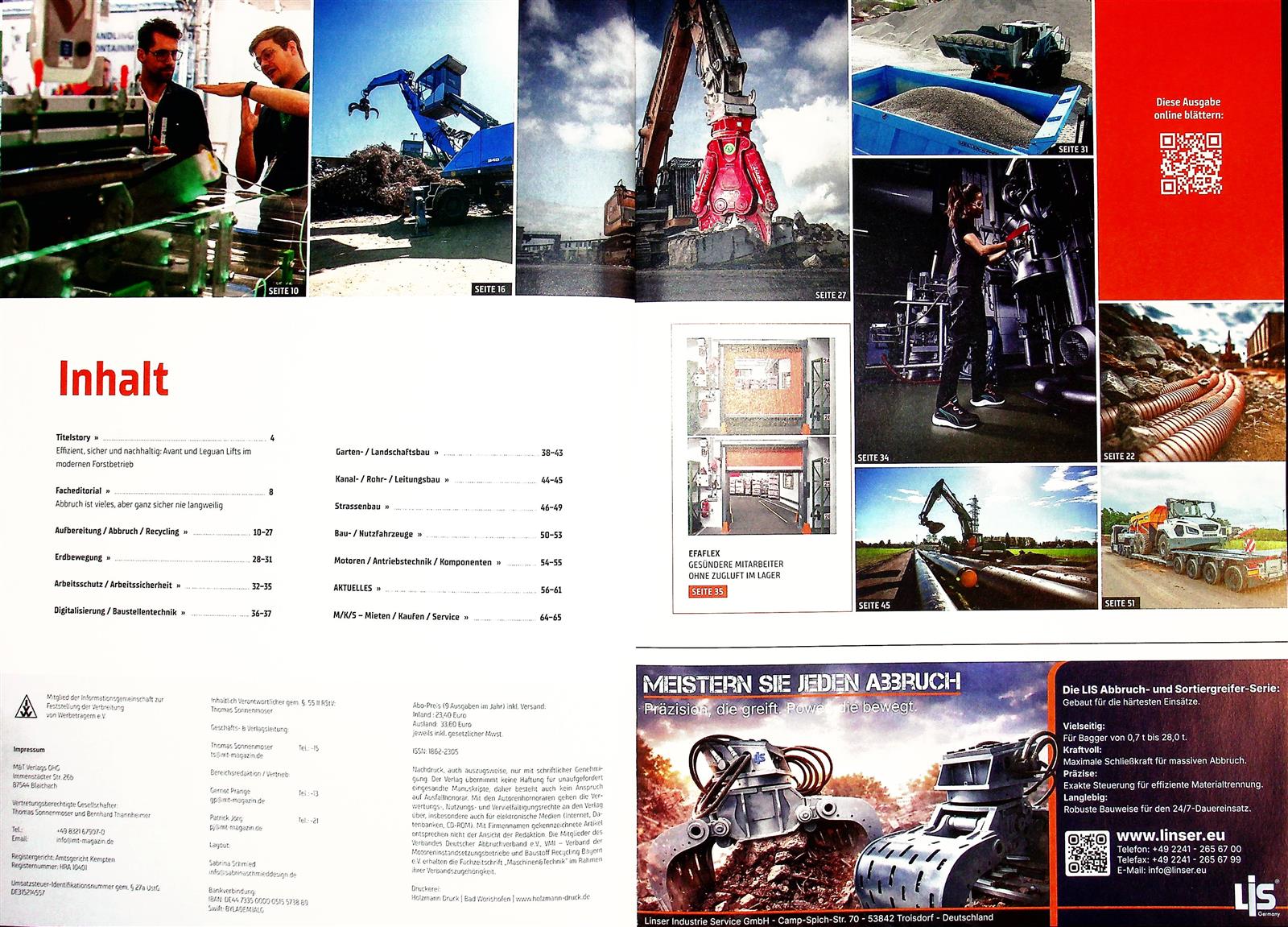 Als eines der führenden Fachmagazine für Baumaschinen, Kommunaltechnik und Nutzfahrzeuge ist Maschinen&Technik seit über 15 Jahren branchenübergreifende Schnittstelle zwischen Herstellern, Händlern/Vermietern und ausführenden Unternehmen/Dienstleistern. Maschinen&Technik liefert 6-mal jährlich (im Zweimonatsrhythmus) Informationen zu aktuellen Branchenereignissen, neuester Maschinentechnik und deren Anwendung in Form von attraktiv und hochwertig aufbereiteten Text- und Bildbeiträgen.