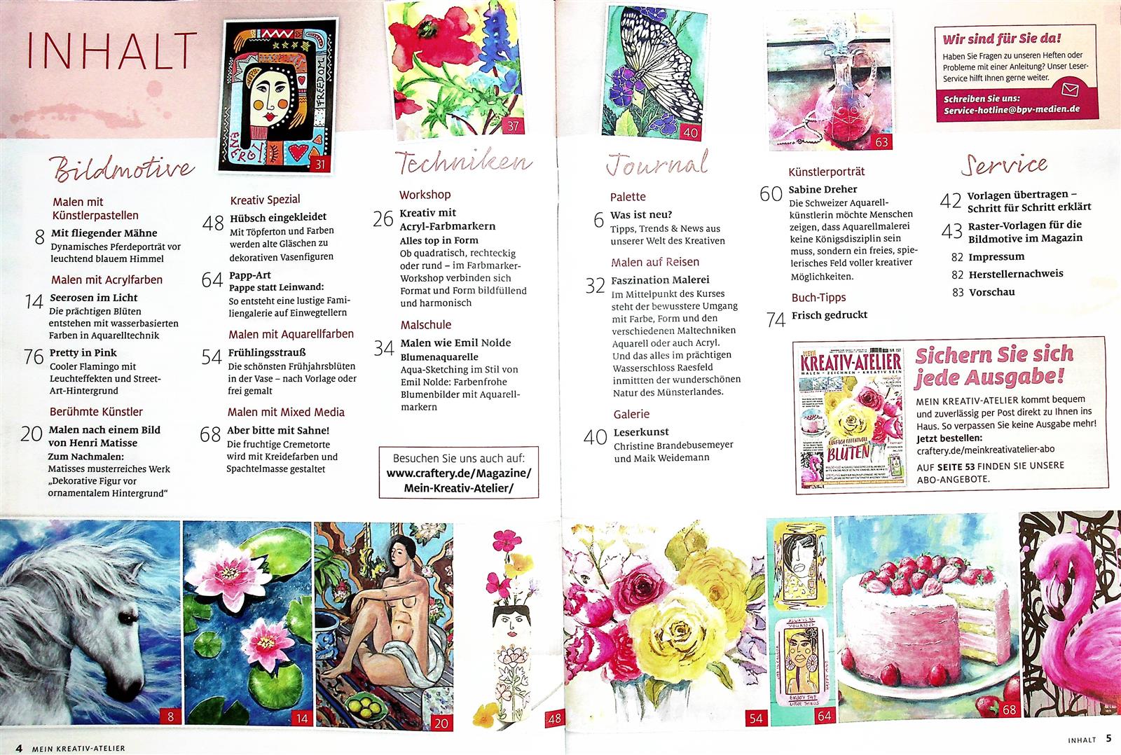 Immer wieder tolle Anregungen und Anleitungen für mein Hobby. Leider aber auch des öfteren Wiederholung von Bildern aus früheren Ausgaben. Die Infos über Malreisen finde ich super. Werde sicher mal dieses Angebot nutzen.