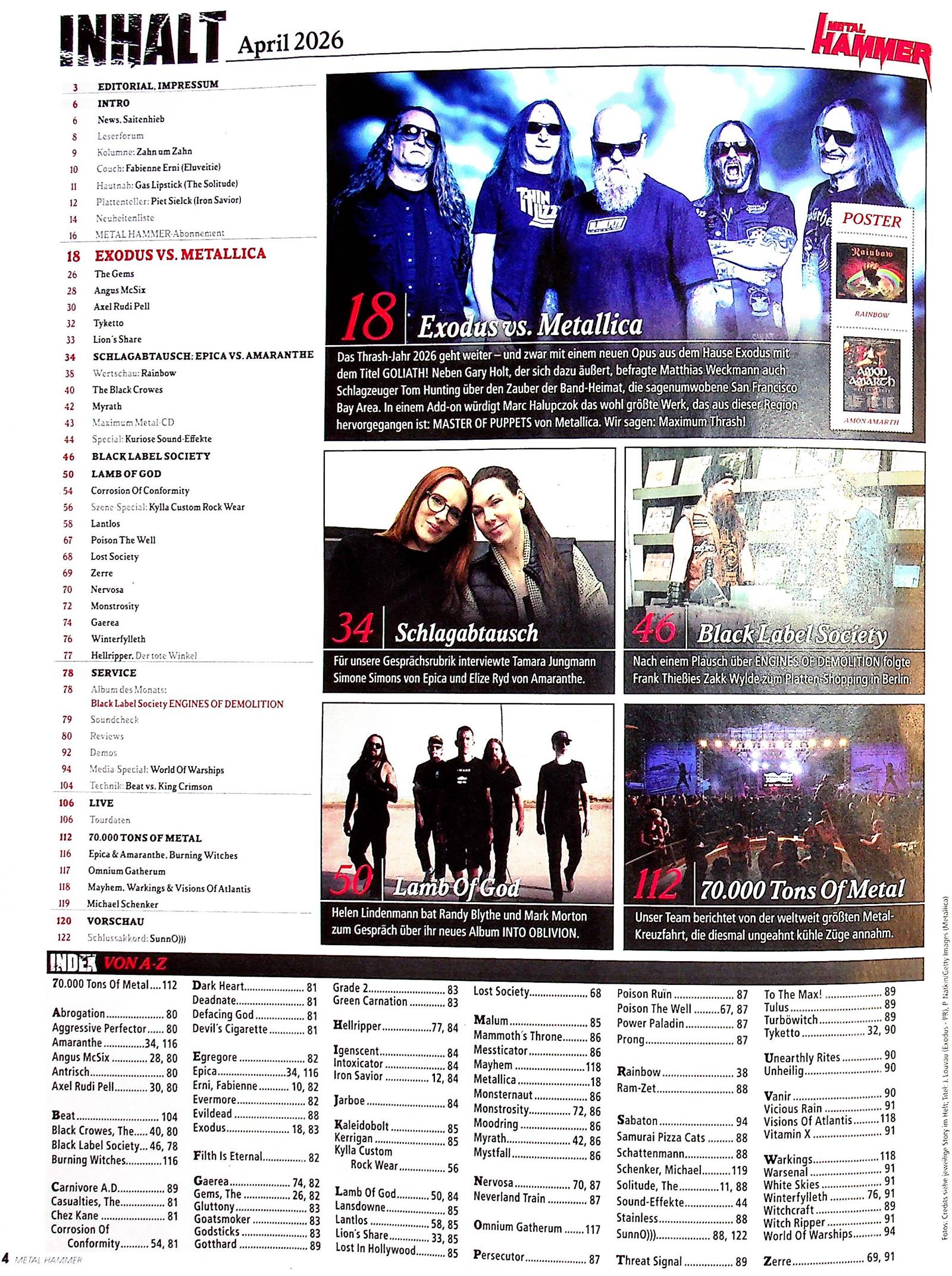 Das Thrash-Jahr 2026 geht weiter – und zwar mit einem neuen Opus aus dem Hause Exodus mit dem Titel Goliath! Neben Gary Holt, der sich dazu äußert, befragte Matthias Weckmann auch Schlagzeuger Tom Hunting über den Zauber der Band-Heimat, die sagenumwobene San Francisco Bay Area. In einem Add-on würdigt Marc Halupczok das wohl größte Werk, das aus dieser Region hervorgegangen ist: Master of Puppets von Metallica. Wir sagen: Maximum Thrash!