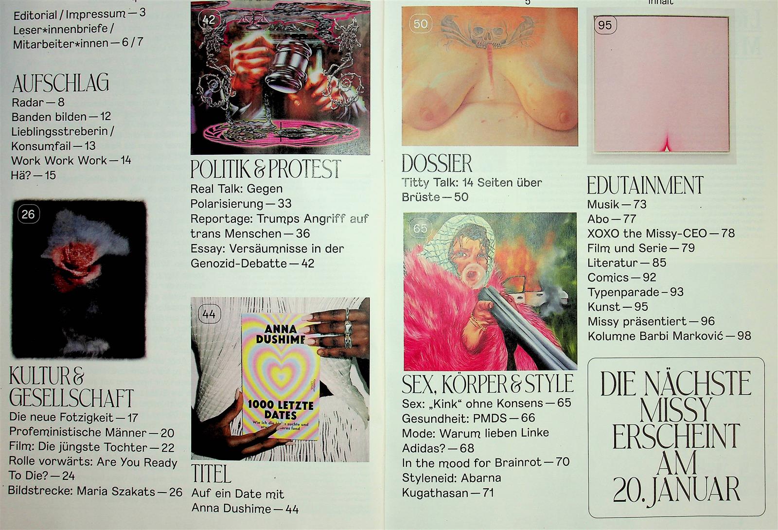 Missy ist für mich eine der besten Magazine - witzig, absolut feministisch, klug, kritisch, engagiert, haarsträubend gut, aufreizend für den Geist, endlich Frauen & Themen, die sich besten eignen, mit anderen zu diskutieren,