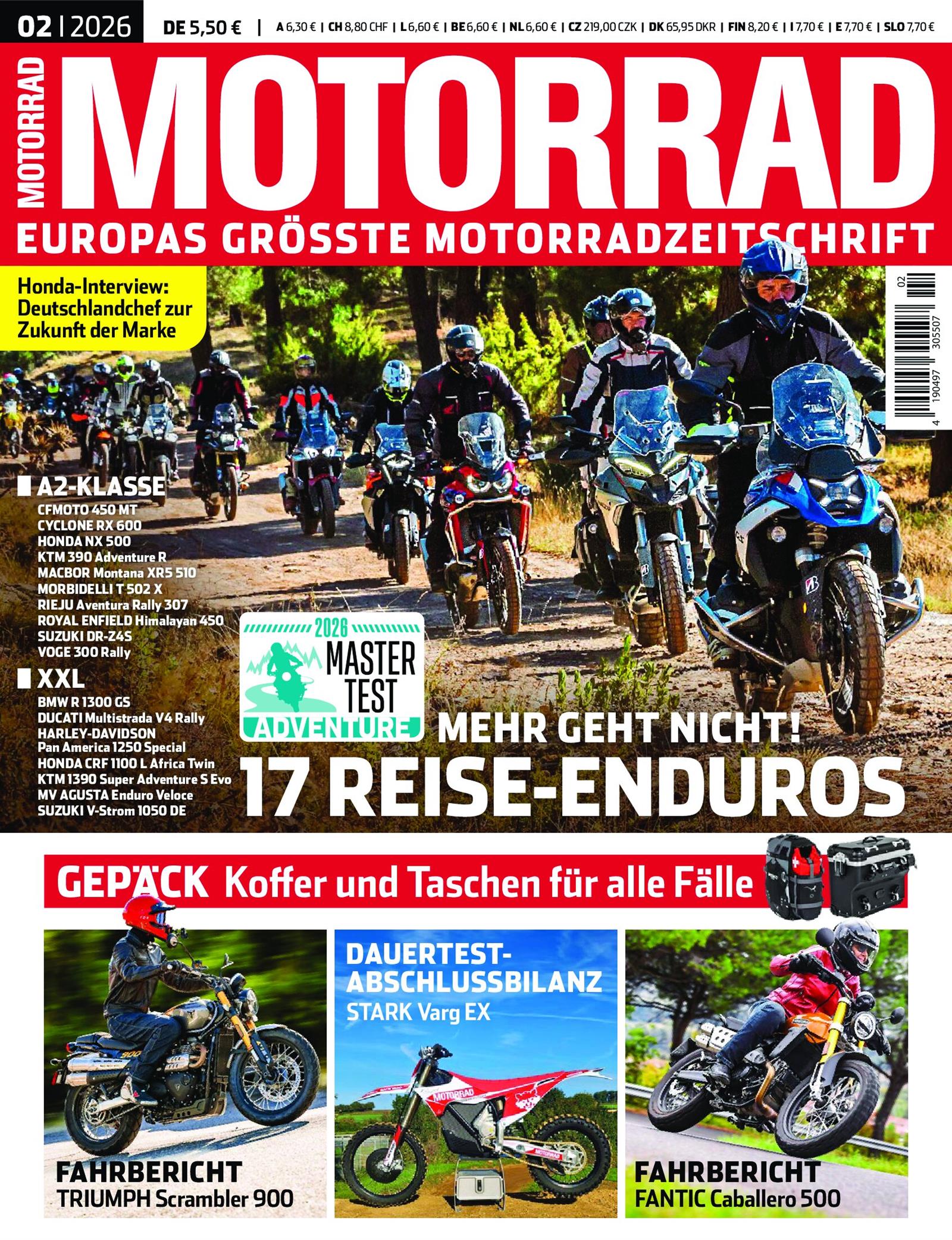 Detaillierter Test von 36 Adventure-Motorrädern, aufgeteilt in A2-Klasse und XXL-Kategorie, mit Daten, Fahreindrücken und Bewertungen.