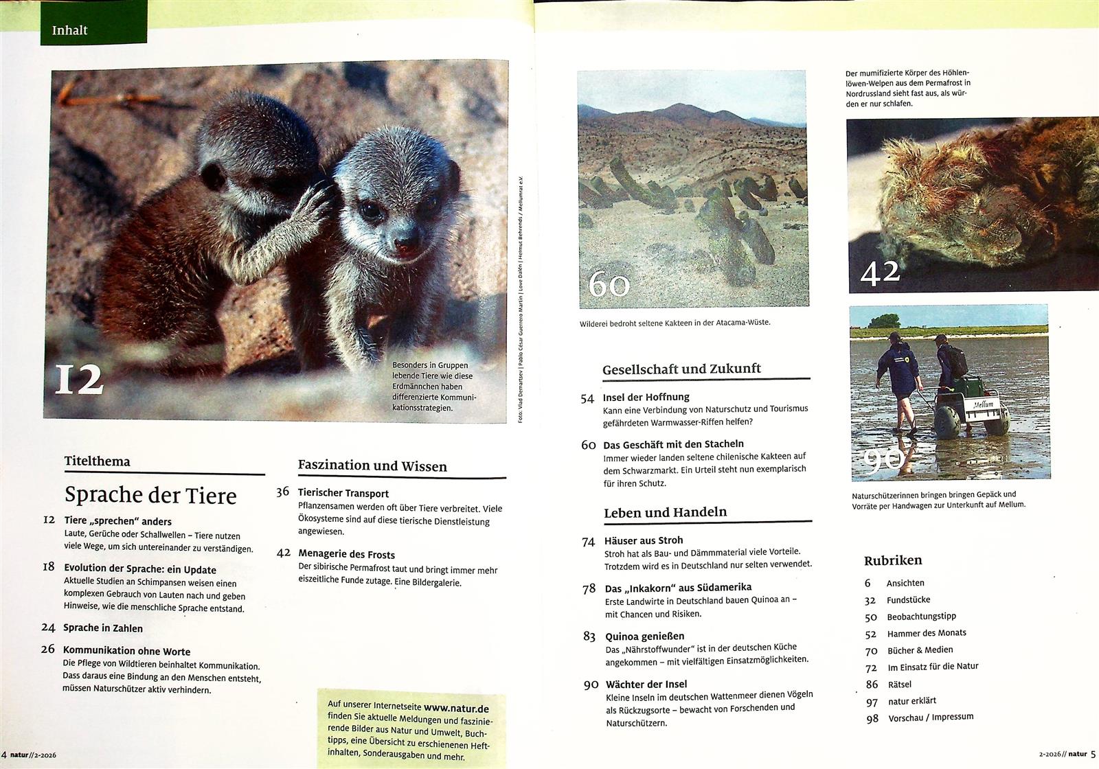 Beachtlich an der Natur ist sicherlich ihre lange Tradition. Darüber hinaus gelingt dem „Magazin für Natur, Umwelt und nachhaltiges Leben“ der Spagat zwischen aussagekräftigen Fotos und gut recherchierten Texten, und mahnt nicht nur, sondern gibt handfeste, konkrete Beispiele und Impulse für die Unterstützung der Natur.