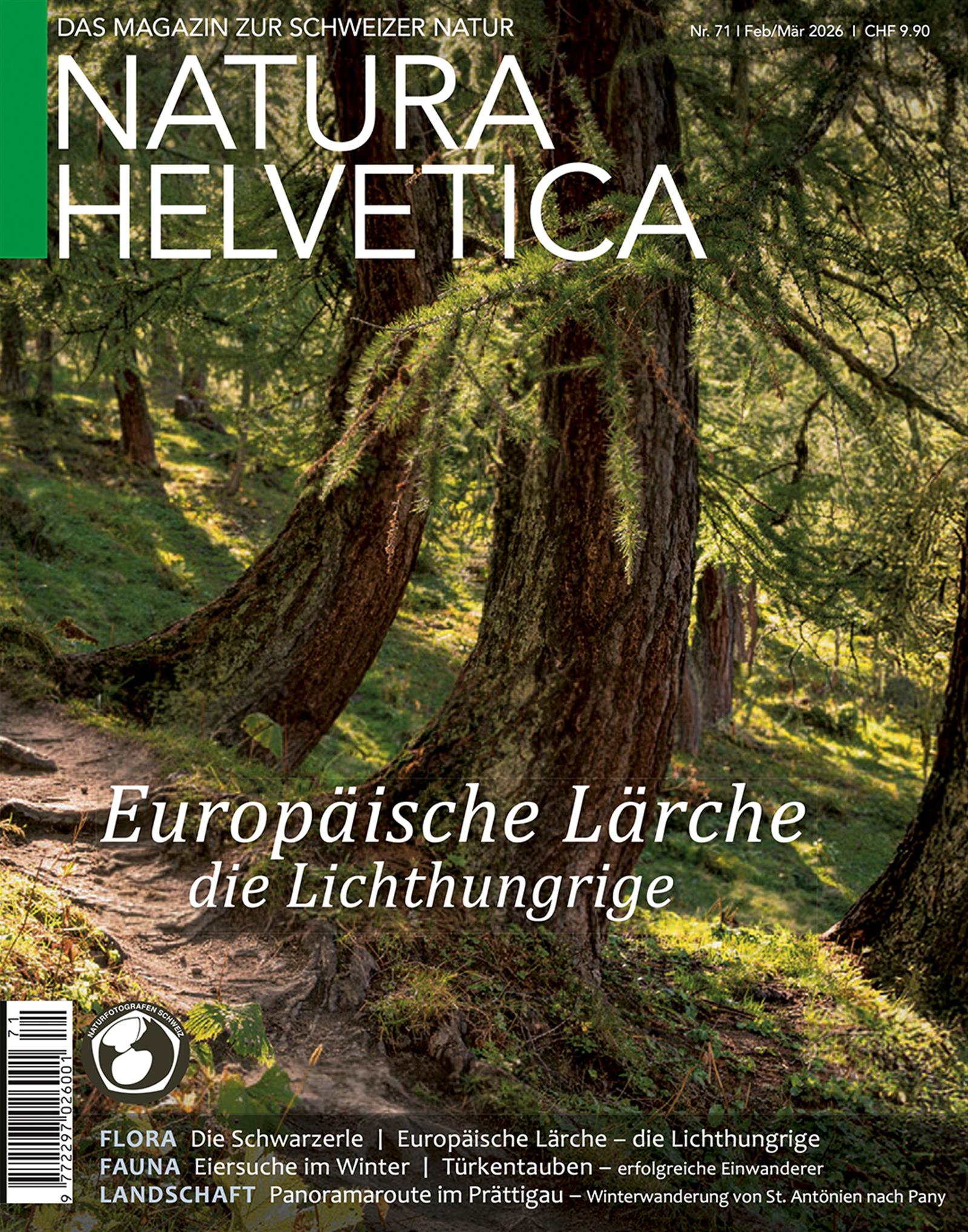 Die hochwertige 52-seitige Zeitschrift Natura Helvetica ist das Schweizer Magazin über einheimische Natur und Tiere und erscheint 6 mal im Jahr.
