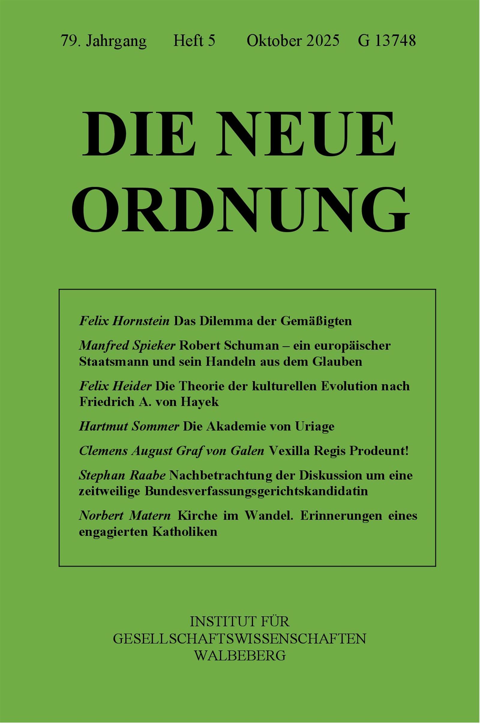 Die Neue Ordnung ist die älteste von Dominikanern publizierte deutschsprachige Zeitschrift. Sie erscheint seit beinahe achtzig Jahren alle zwei Monate. Ohne konfessionell gebunden zu sein, widmet sie sich auf der Grundlage des christlichen Menschenbildes, wie es die katholische Soziallehre herausgebildet hat, auf angemessenem intellektuellen Niveau allen möglichen Themen aus Religion, Kultur und Gesellschaft.