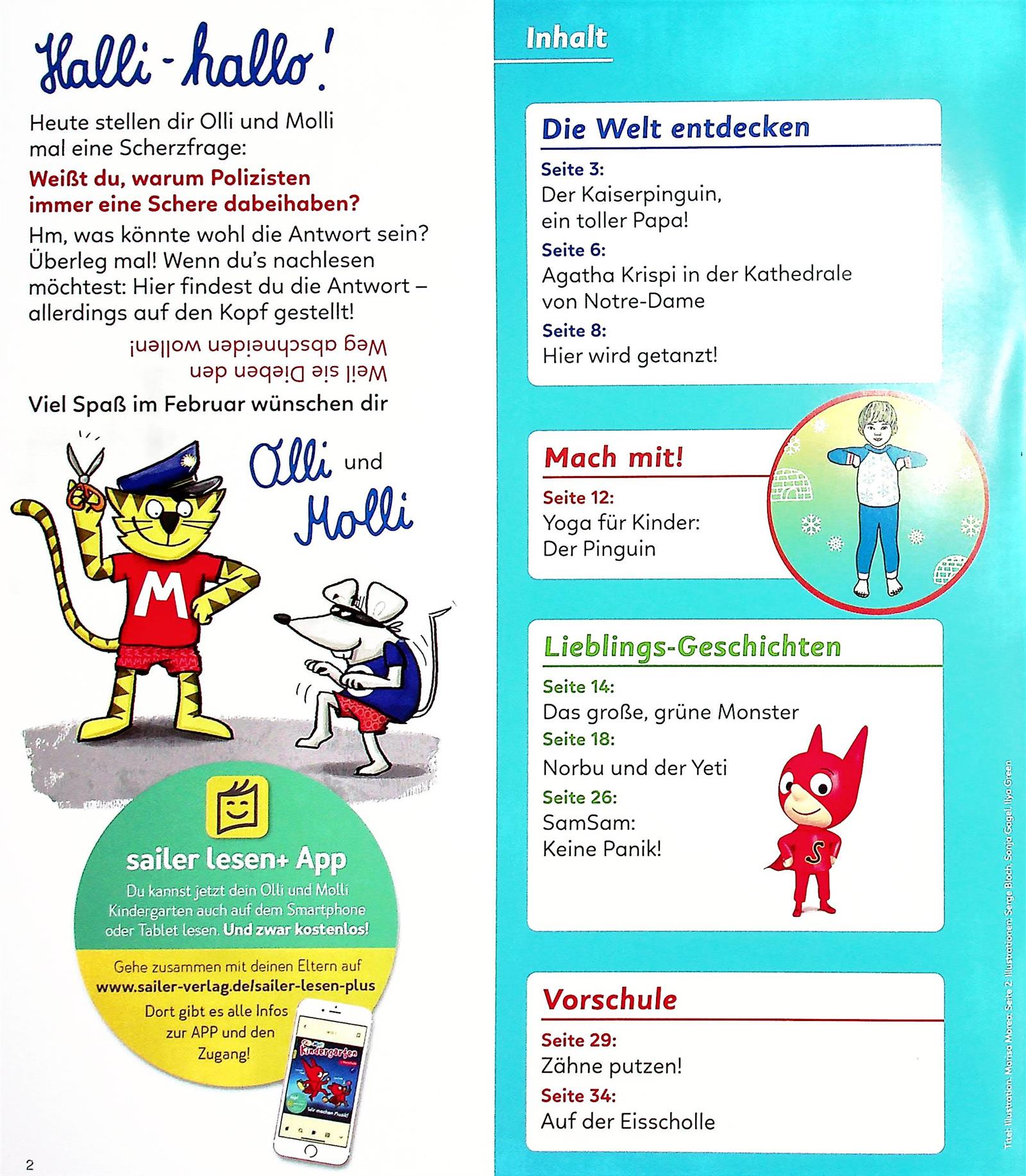 Olli & Molli Kindergarten erscheint im Sailer Verlag, der seit vielen Jahren durch pädagogisch orientierte Zeitschriften geprägt ist. Neben den Magazinen aus der Olli & Molli– Reihe erscheinen hier auch die Stafette und der Tierfreund.