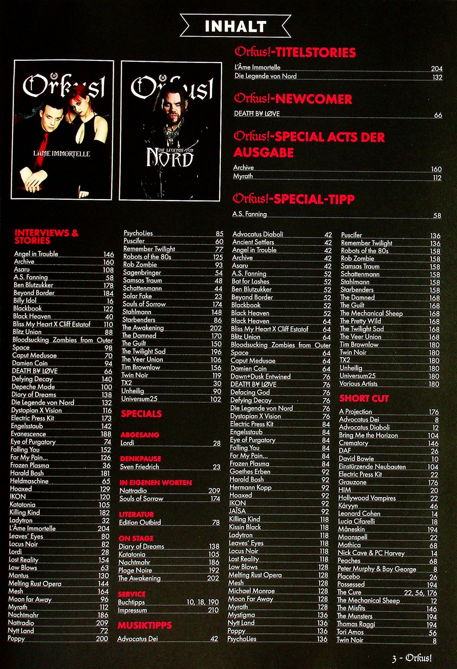 Schwarze Musik und Kultur, Mystik im Sound – Dark Rock und Dark Metal begeistern Fans rund um die Welt. Orkus ist das Magazin der deutschsprachigen Szene – Klassiker und Trendsetter zugleich.