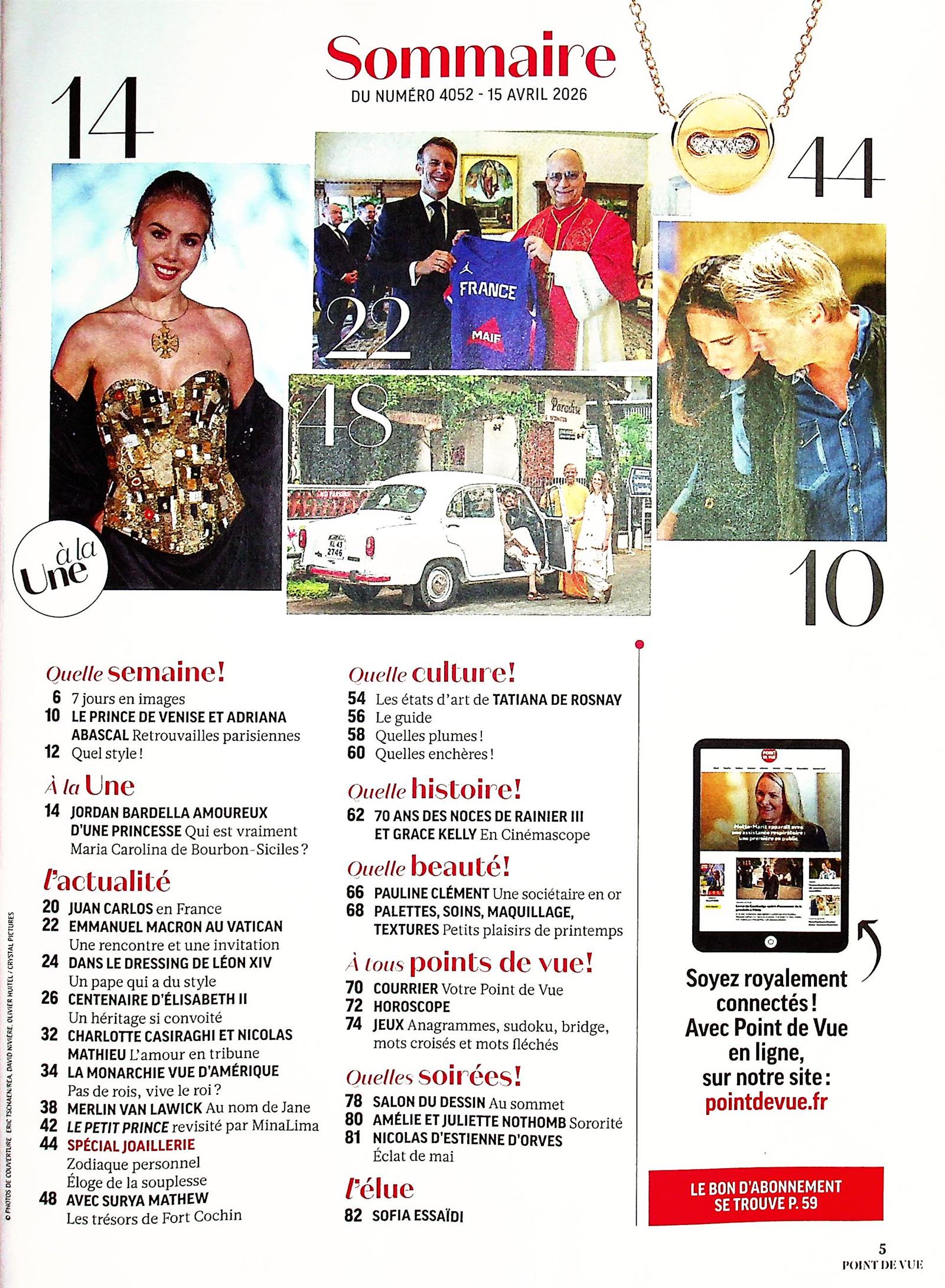 Lecteur·rice·s découvrent le véritable visage de Maria Carolina de Bourbon-Siciles et sa relation avec Jordan Bardella, avec le contexte historique des Bourbons des Deux-Siciles et des détails inédits. S’ajoutent la première sortie de Charlotte Casiraghi et Nicolas Mathieu, le centenaire d’Élisabeth II ainsi que le couple Emanuele Filiberto et Adriana Abascal à Paris.