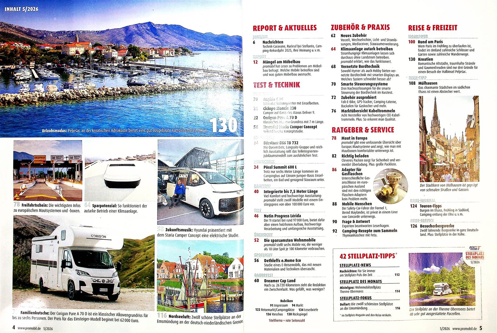Die Zeitschrift Promobil ist Europas Nummer eins im Bereich der Reisemobil–Magazine und versteht sich als erstes Sprachrohr der Szene.