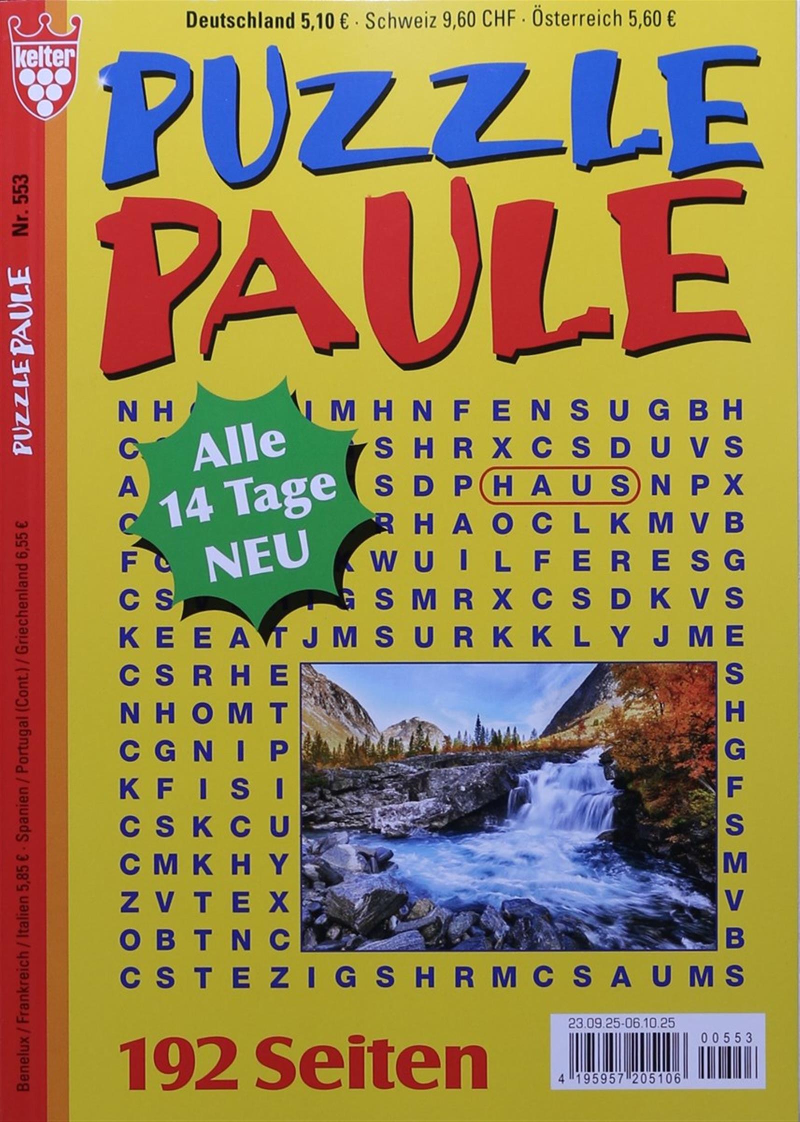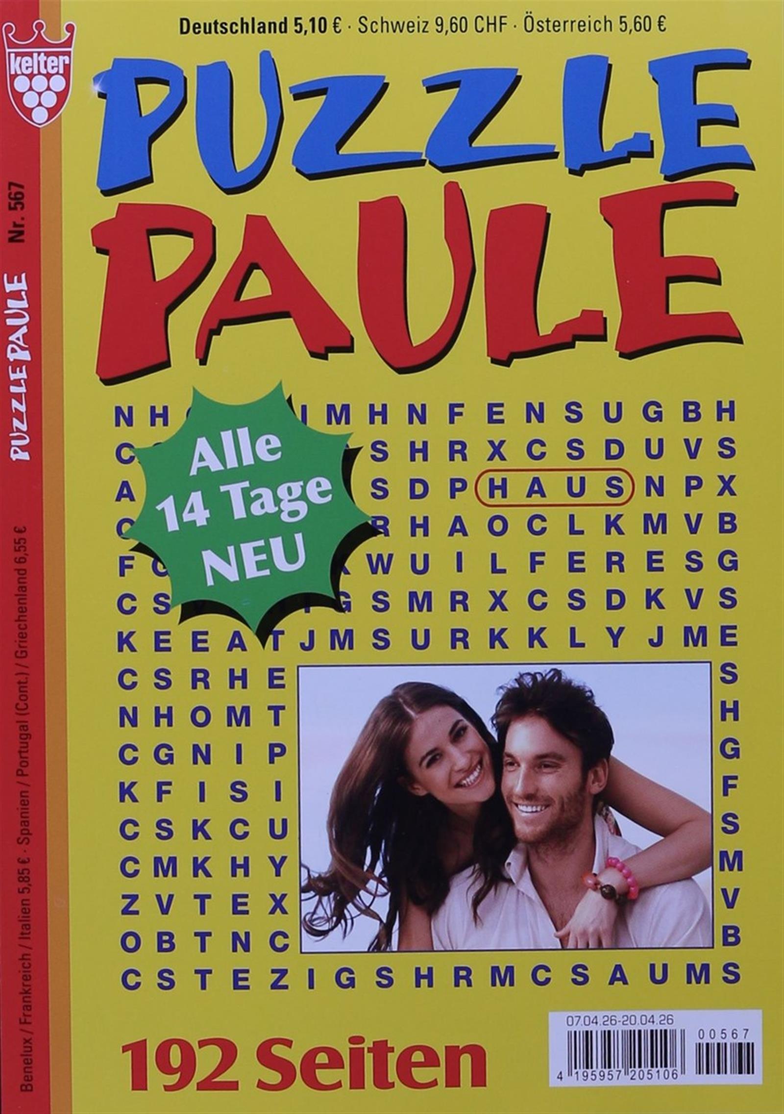 Puzzle Paule mit 192 Seiten bietet verschiedene Rätsel in einem Heft: Ob Gitter-Rätsel, Wortsuche oder Basel-Rätsel – alles ist dabei.