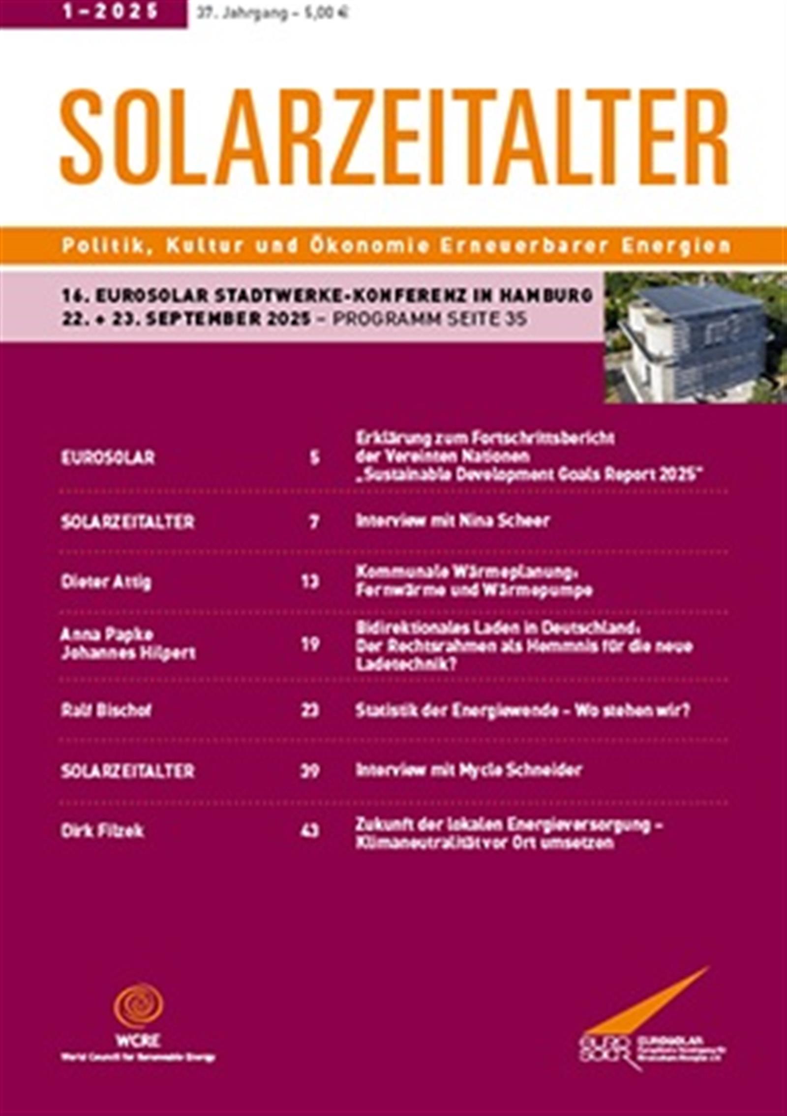 Die Zeitschrift Solarzeitalter ist seit 1989 das offizielle deutsch-sprachige Organ von EUROSOLAR e.V., der Europäischen Vereinigung für Erneuerbare Energien, sowie des 2001 gegründeten Weltrats für Erneuerbare Energien (World Council for Renewable Energy, WCRE),dessen Sitz bei EUROSOLAR ist.