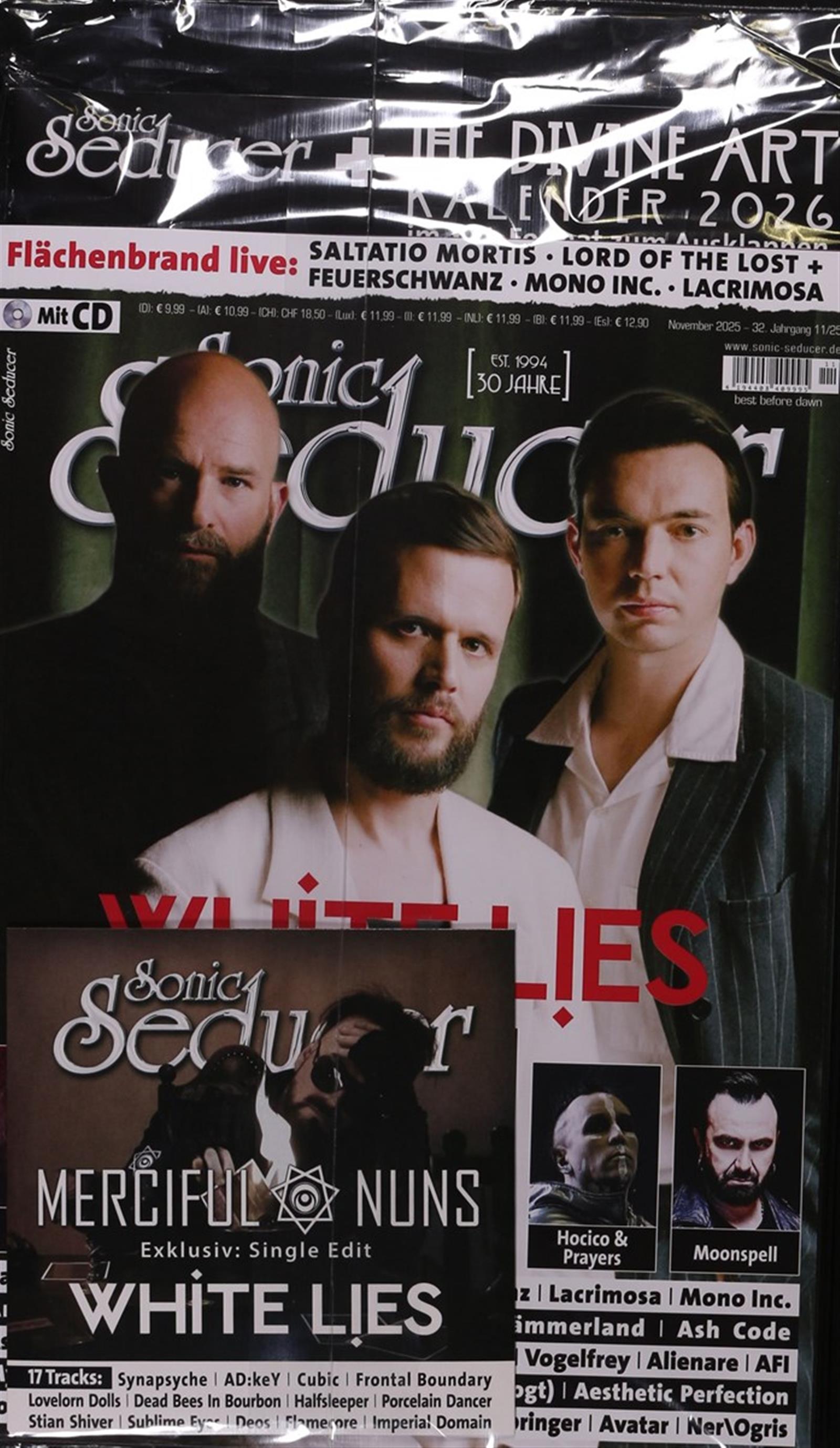 Diese Ausgabe enthält erneut unseren „The Divine Art Kalender“ für 2026, den Chefredakteur und Sonic-Seducer-Gründer Thomas Vogel für Euch wie immer mit viel Herzblut kuratiert hat. Der Titel ist auch diesmal natürlich wieder Programm, und der Kalender selbst zeichnet sich durch besonders fesselnde, archaische und rituelle Motive im Großformat zum Ausklappen aus. Ein Muss für alle, die künstlerische, dunkle Bilderwelten schätzen!