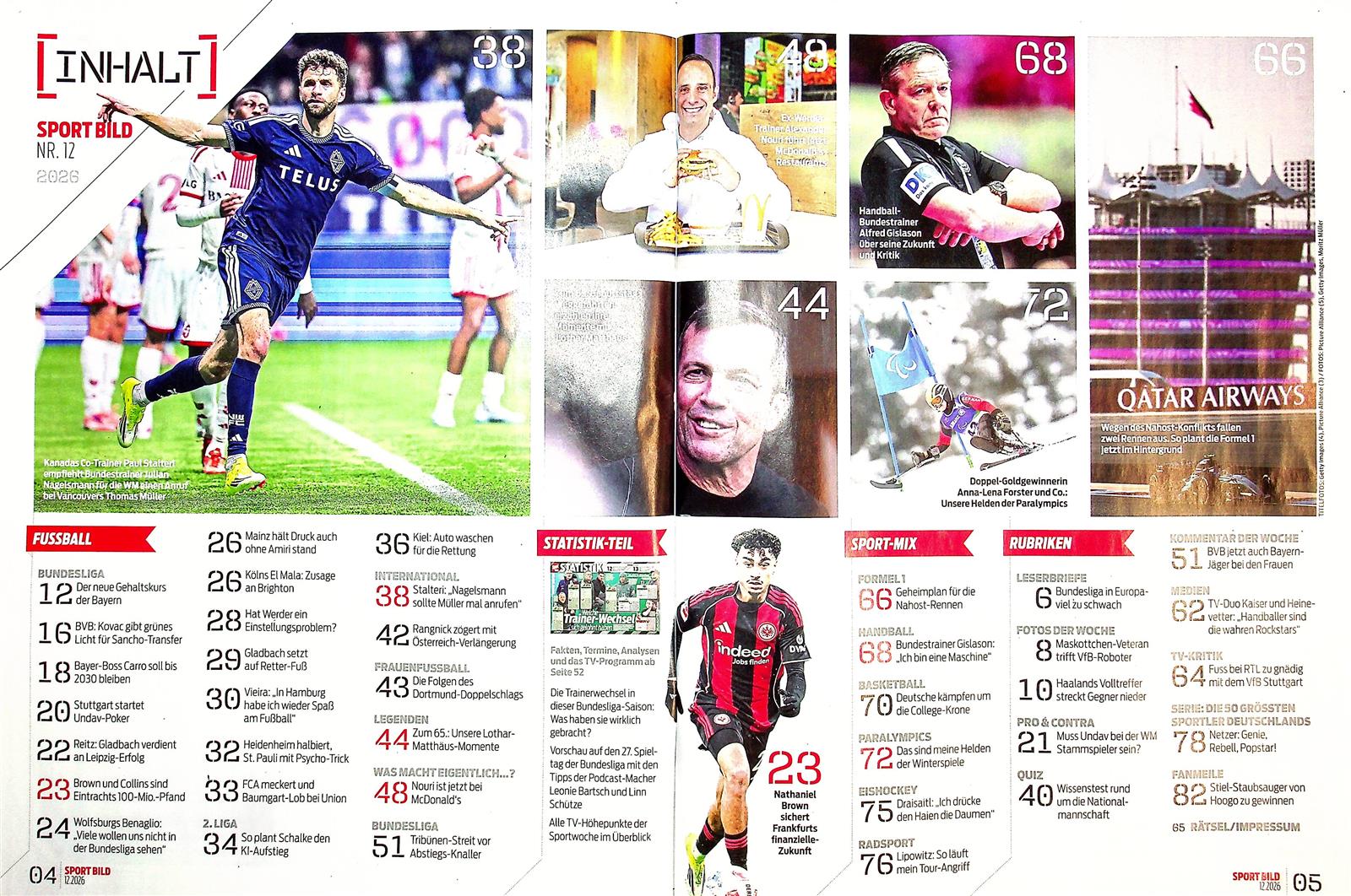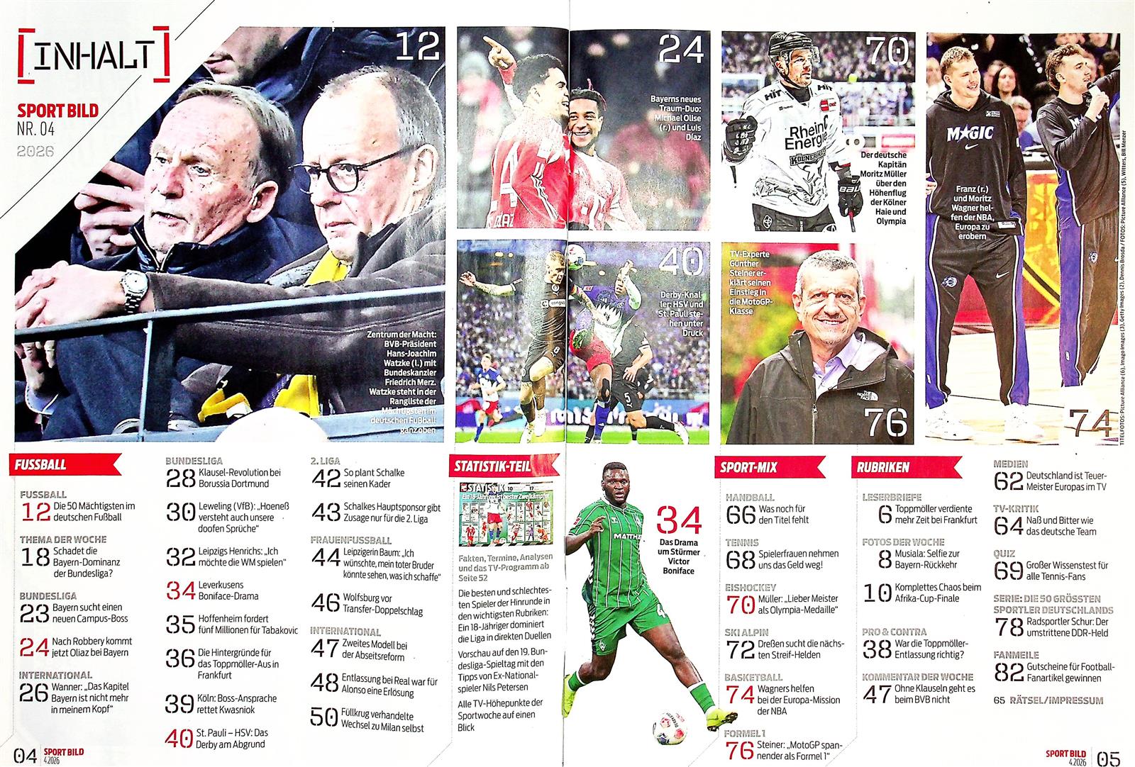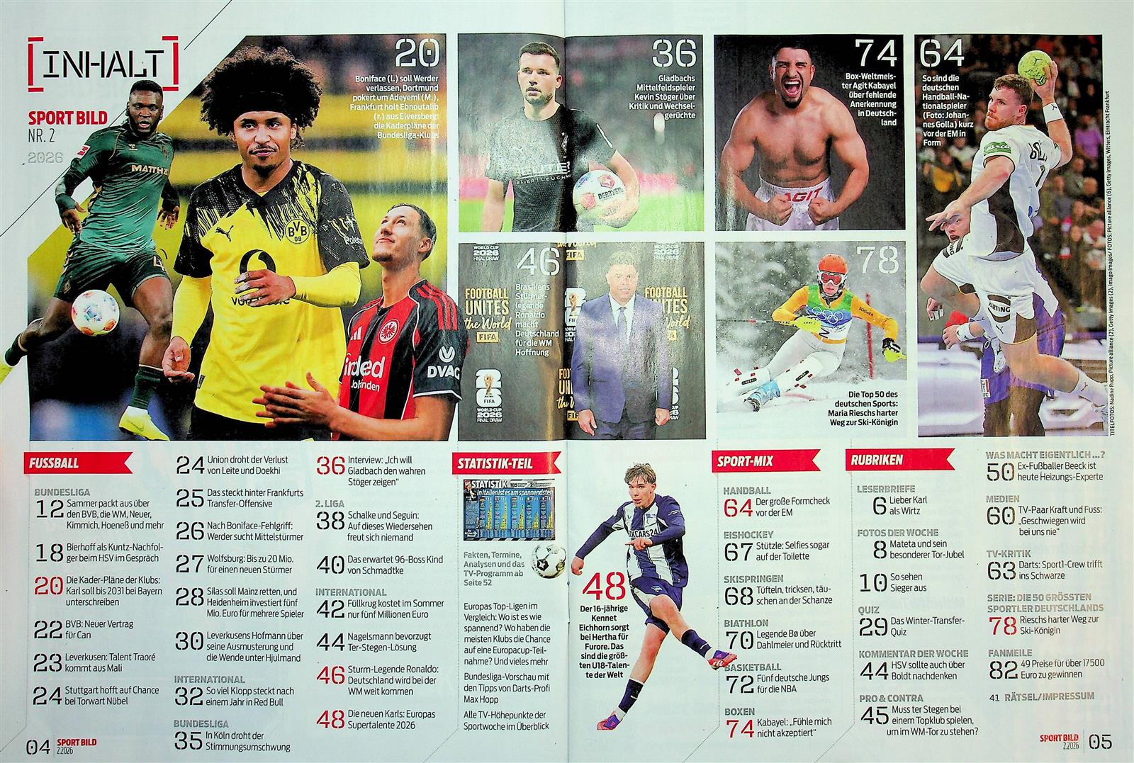 Die Sport Bild ist eines der Leitmedien im Bereich des Sports in Deutschland. In der Zeitschrift gibt es wöchentlich die wichtigsten Nachrichten aus der Welt des Profisports. Die neueste Ausgabe kommt immer mittwochs heraus und ist sowohl als gedrucktes Magazin als auch als ePaper erhältlich. Die Sport Bild behandelt aktuelle Themen durch wichtige Hintergrundreportagen, Portraits, Interviews und vor allem auch durch Kommentare von renommierten Experten.