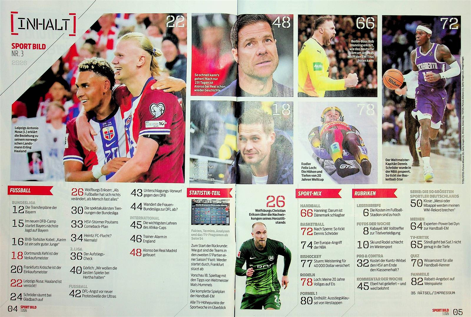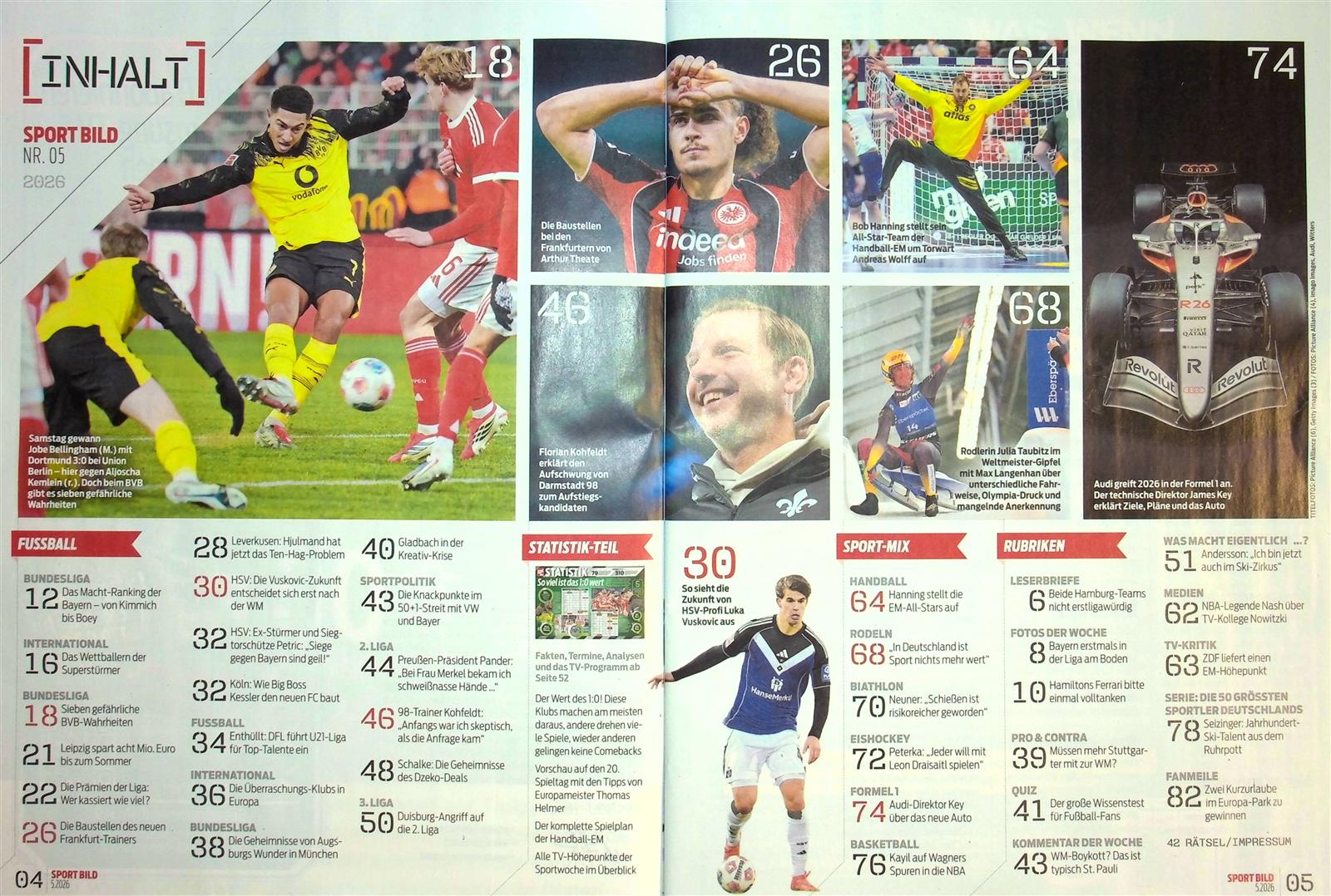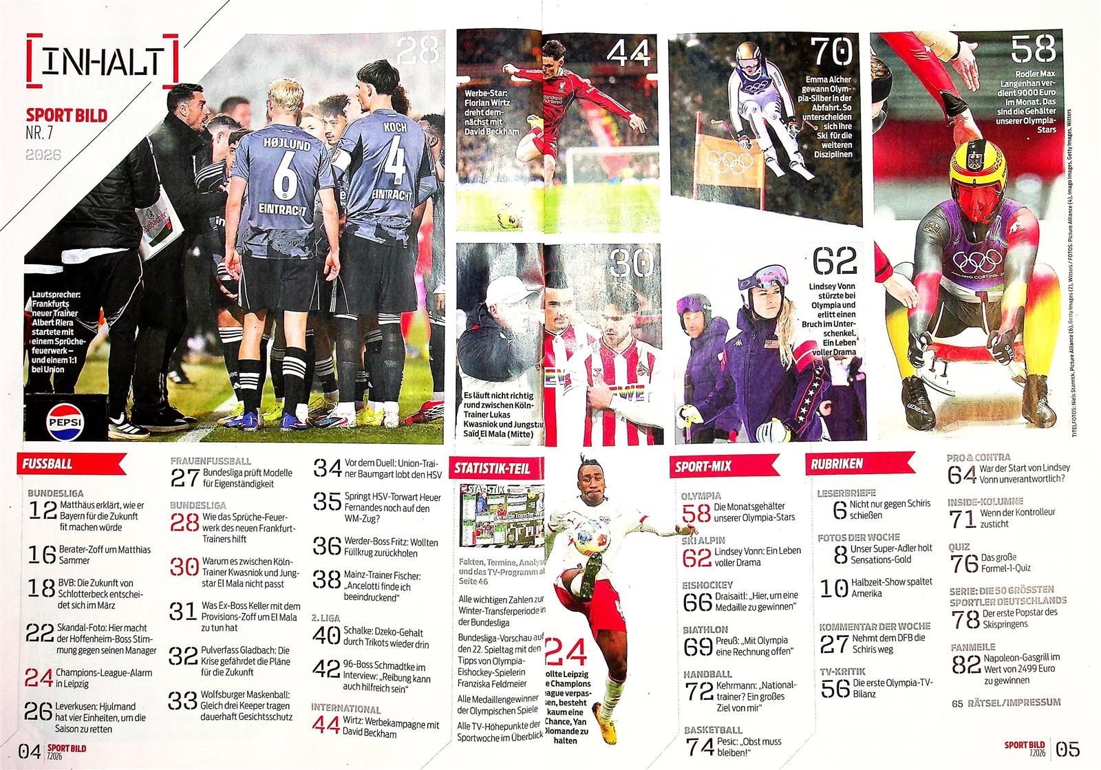Das Heft unterteilt sich dabei in verschiedene Rubriken wie etwa Lesermeinung, Fotos der Woche, Aktionen zum Beispiel mit spannenden Sammelkarten, Quiz, Diskussionen, TV-Kritik und natürlich darf mittlerweile auch eine Rubrik für Digitales nicht fehlen. Denn die Sport Bild hat auch die eSports für sich entdeckt – allen voran ist natürlich regelmäßig das aktuelle FIFA-Spiel für Spielekonsolen im Fokus.
