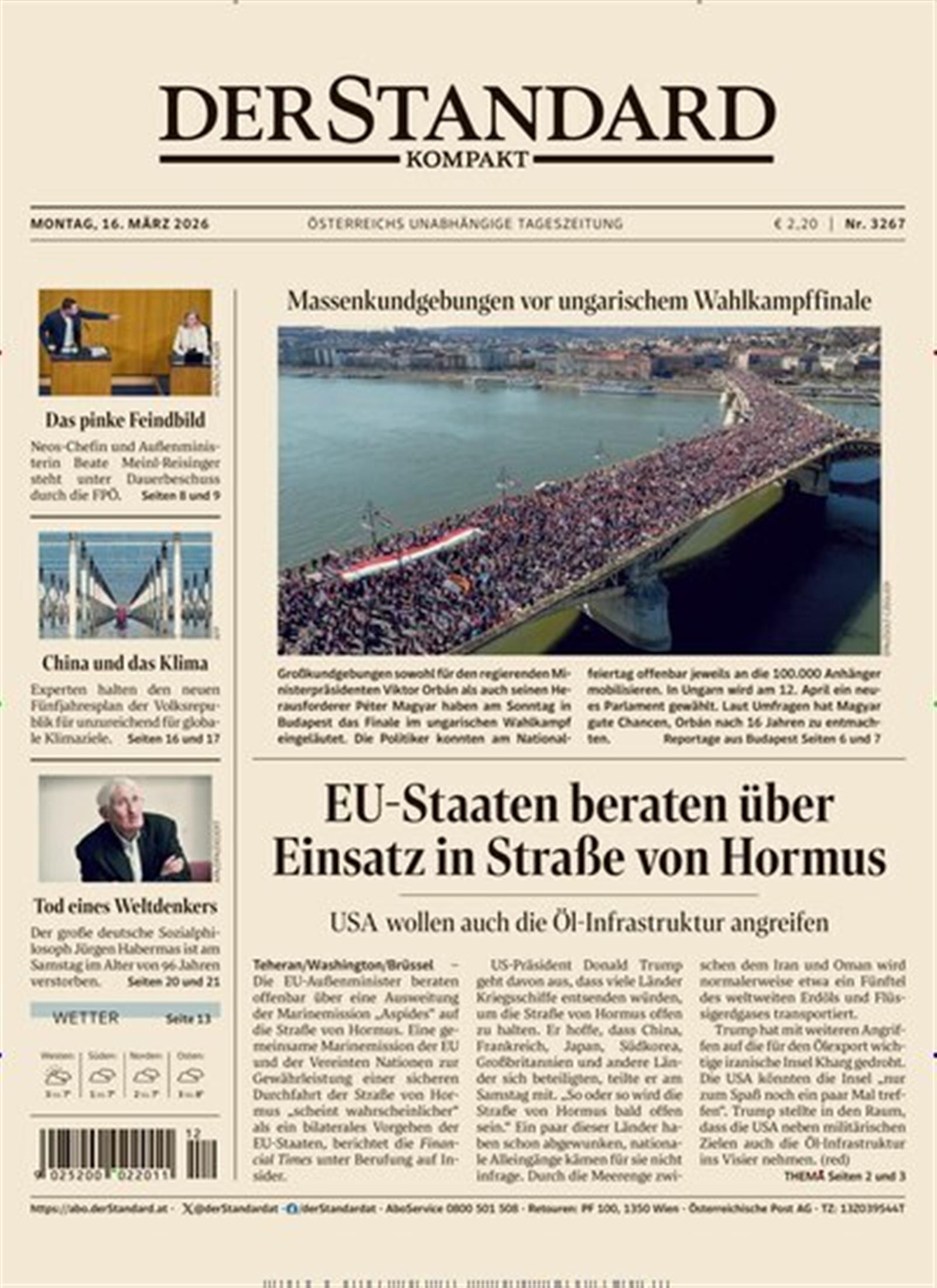 Der Standard zählt zu den renommiertesten Tageszeitungen Österreichs und steht seit seiner Gründung für liberalen, unabhängigen Journalismus. Mit tiefgehenden Analysen, Kommentaren und fundierten Berichten bietet die Zeitung täglich einen kritischen Blick auf das politische, gesellschaftliche und wirtschaftliche Geschehen – in Österreich, Europa und der Welt.