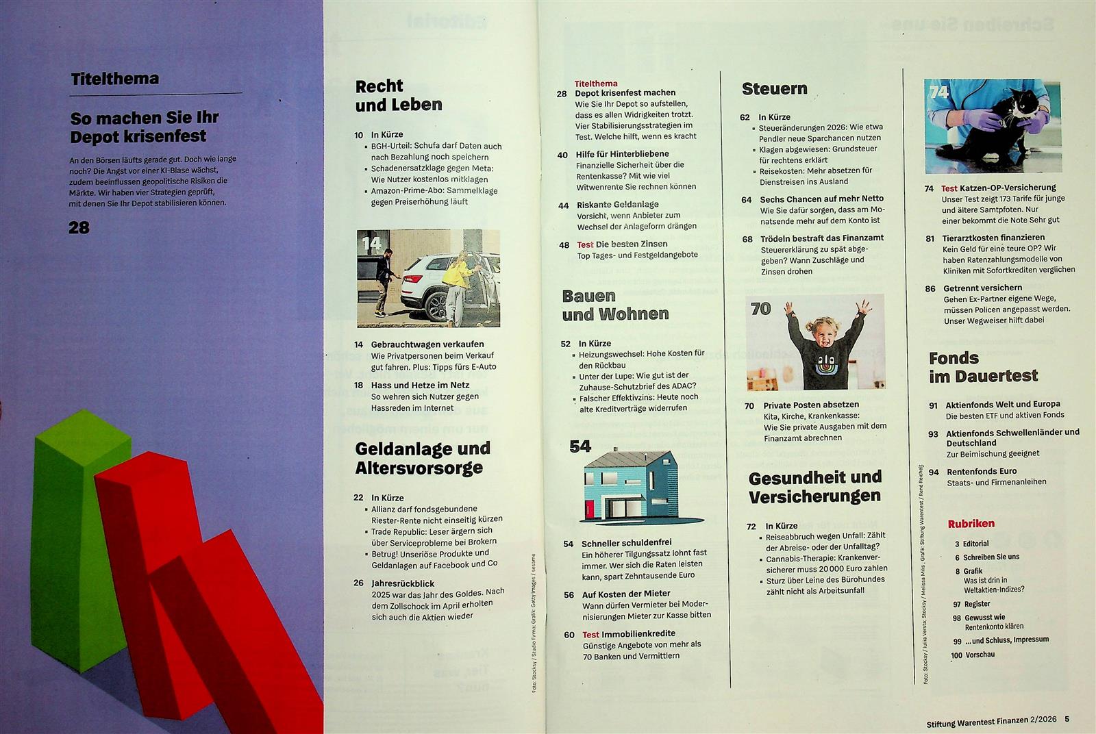 Stiftung Warentest Finanzen richtet sich an Verbraucher, die genau wissen wollen, welches Finanz- oder Versicherungsprodukt für sie am besten geeignet ist und ob es versteckte Fallstricke gibt. Der umfassende Aufbau von Finanztest stellt sicher, dass alle Leser die erforderlichen Informationen erhalten, um die richtigen finanziellen Entscheidungen zu treffen.
