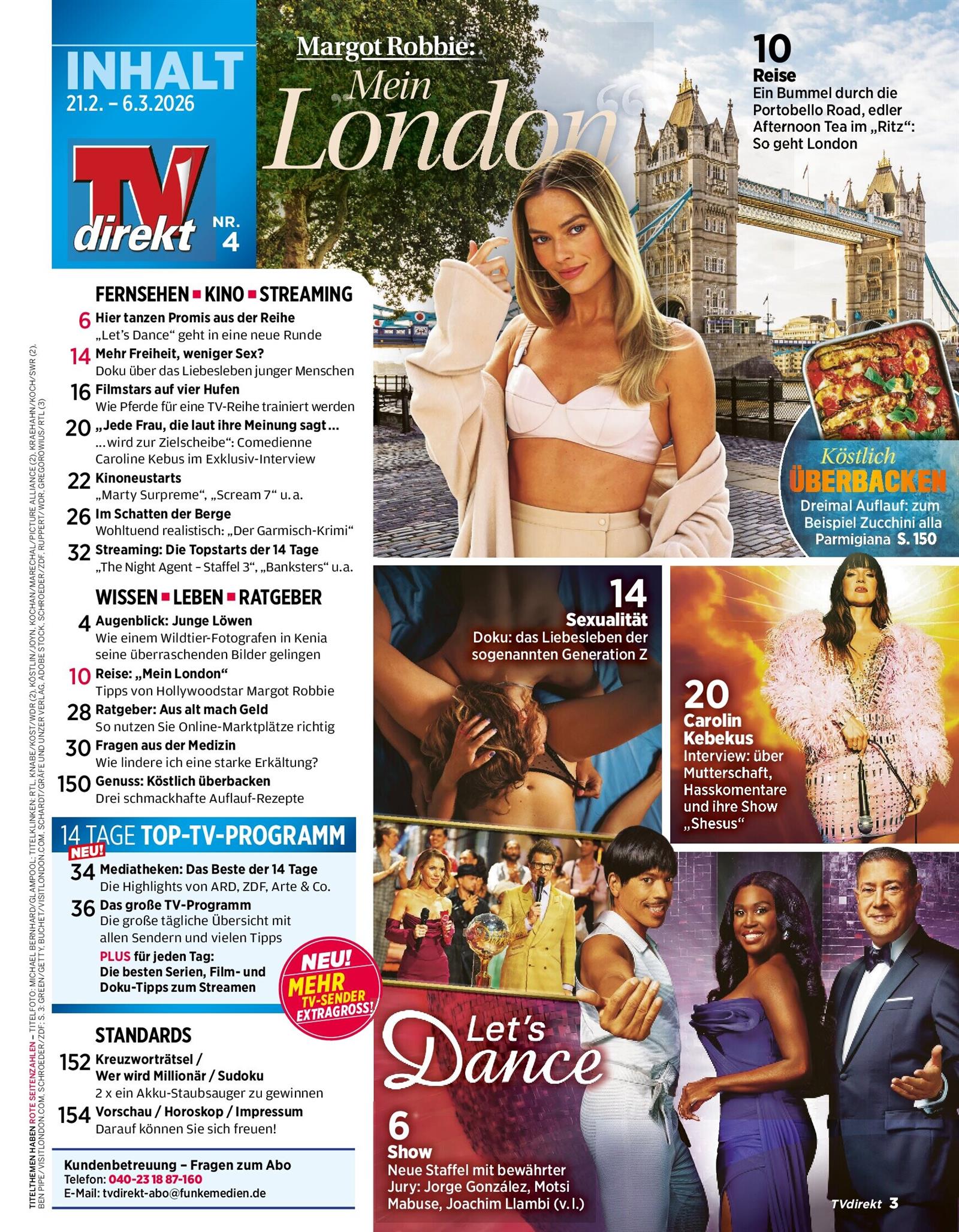 Sie suchen den besten Film zur Primetime oder möchten wissen, welche Serien-Highlights aktuell bei Netflix & Co. laufen? Mit einem TV direkt Abo behalten Sie den Überblick über das gesamte Fernsehprogramm – 14 Tage im Voraus. Die TV direkt gehört zu den meistverkauften TV-Zeitschriften in Deutschland und überzeugt durch ihre kompakte Aufbereitung, fundierte Bewertungen und jede Menge Unterhaltung rund um Stars, Kino und Lifestyle.