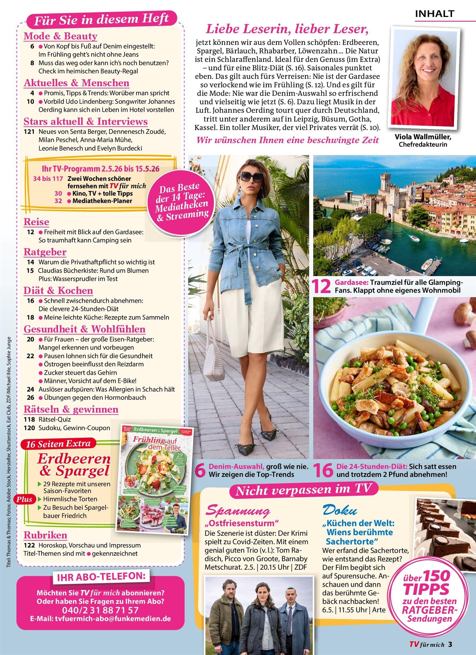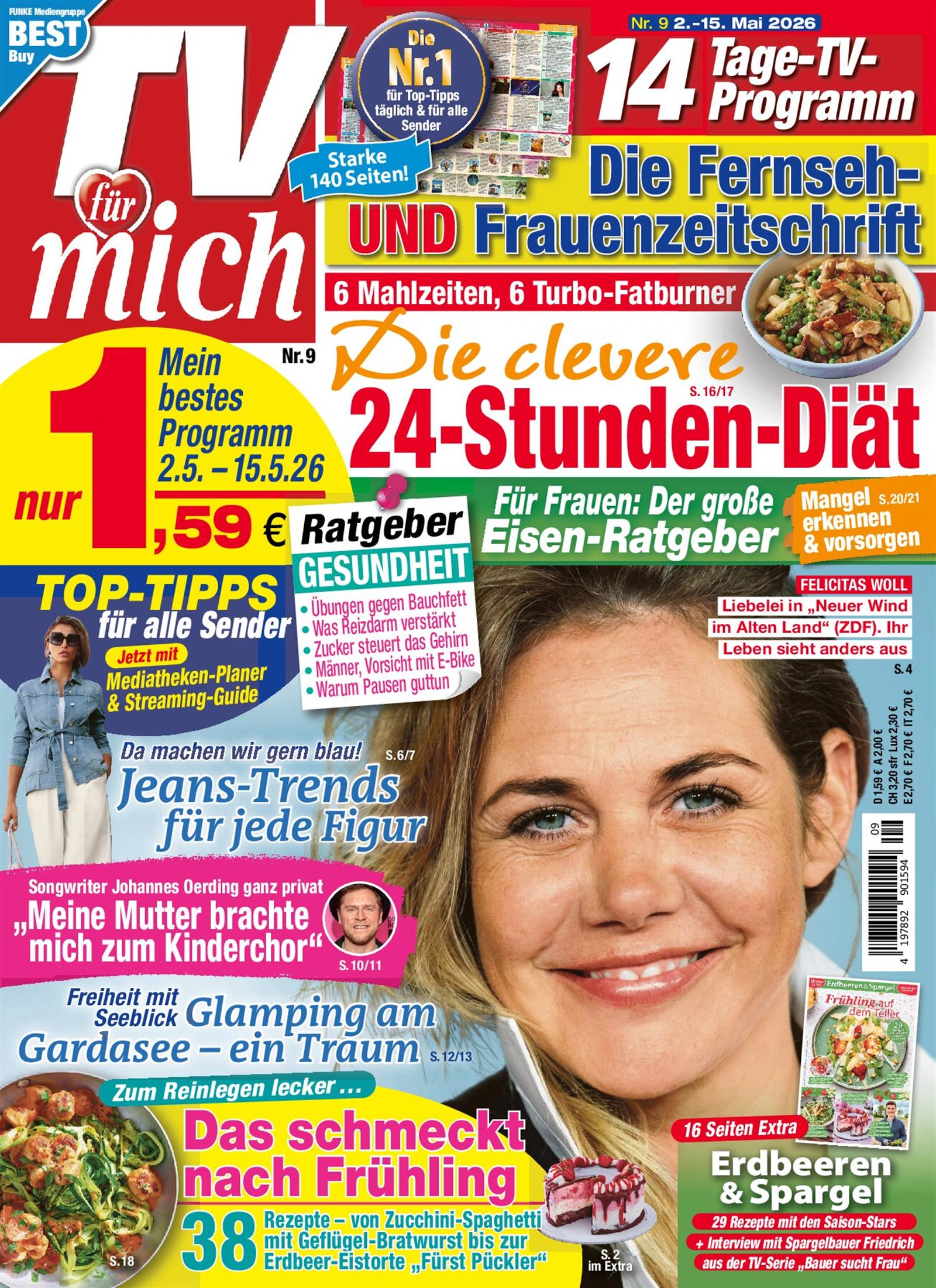 Die TV für mich ist eine Kombination aus eigentlich zwei Zeitschriften. Zum einen 14-tägliche TV-Programmzeitschrift, zum anderen Frauenzeitschrift.