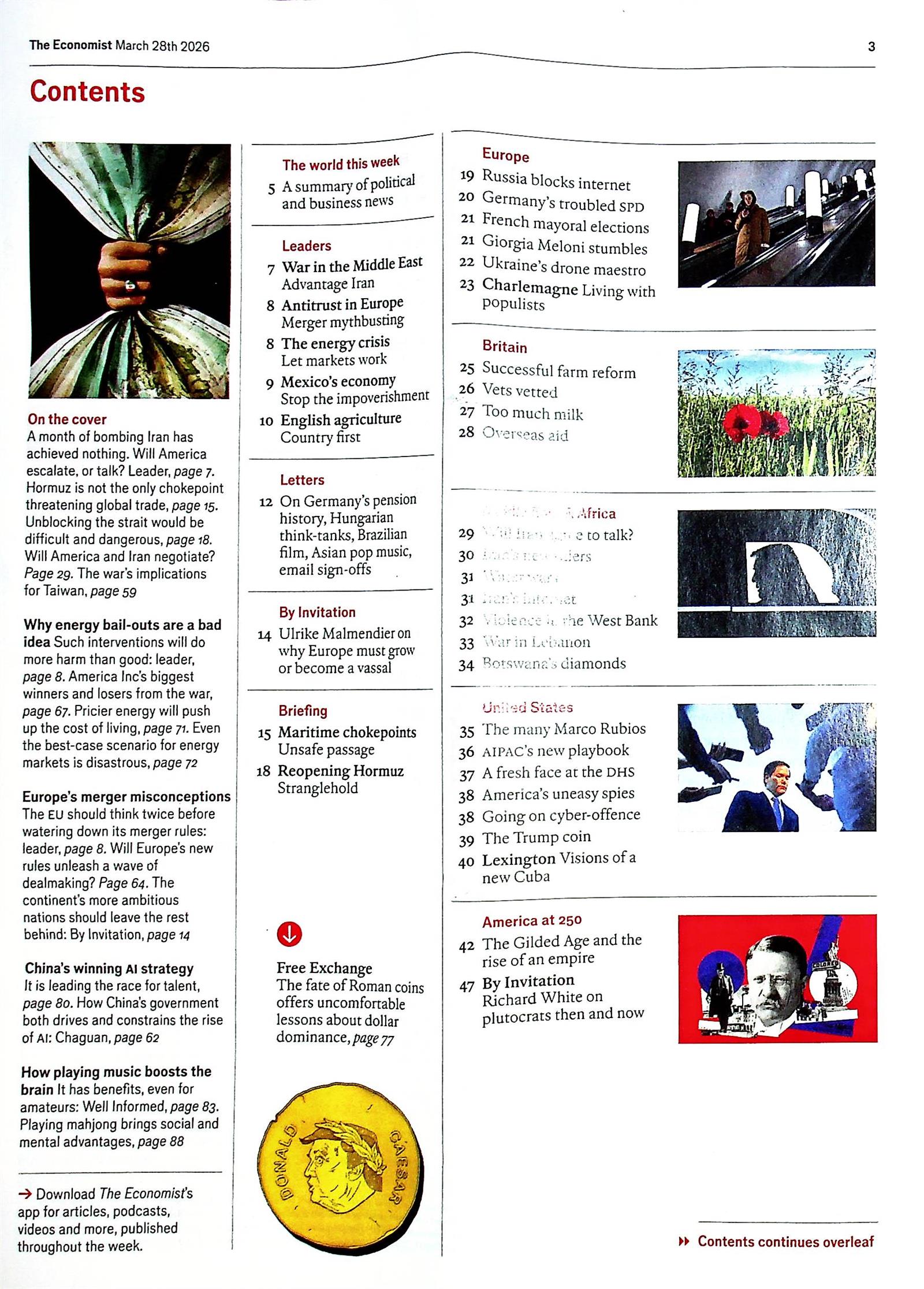 Der Economist ist Teil der politischen International Zeitschriften. Wem der Sinn nach noch mehr englischsprachiger Lektüre steht, der ist mit der Financial Times Mo-Fr oder der Atlantic Monthly bestens beraten.