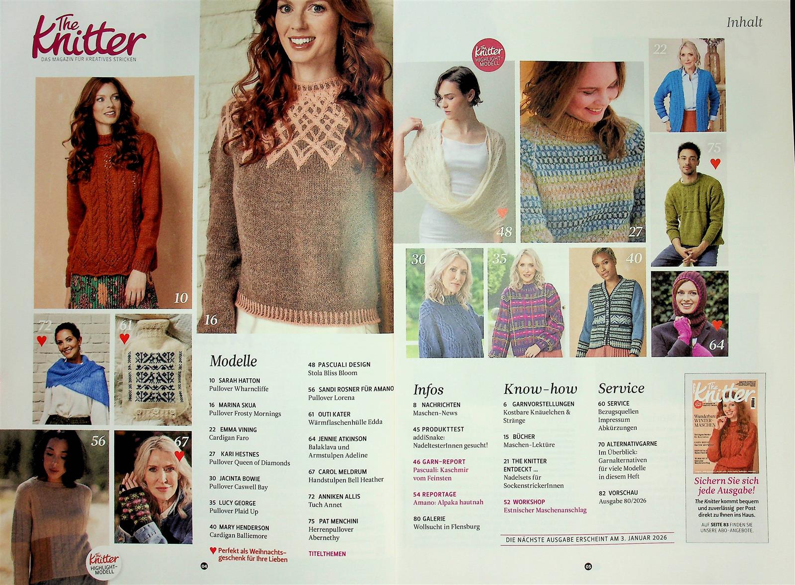 Wie es der englische Name bereits nahelegt, dreht sich bei The Knitter alles um das Stricken. Entsprechend bestehen Gemeinsamkeiten zu klassischen Strickmagazinen wie der Annaoder der Burda Style.