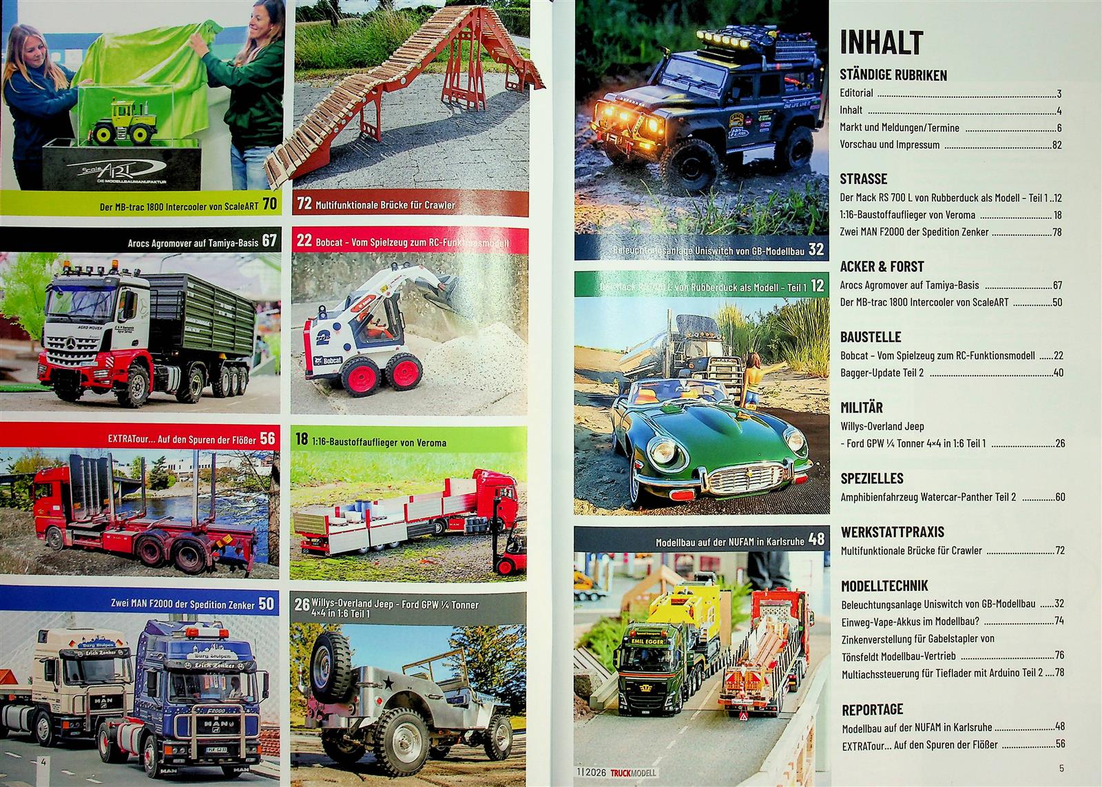 TRUCK modell zeigt alles über den Selbstbau von ferngesteuerten LKW-, Truck-, und Sondermodellen. In jeder Ausgabe wird ein Originalfahrzeug in Dreiseitenansicht mit ausführlicher Dokumentation vorgestellt. Bautechniken, Tipps und Tricks für die heimische Werkstatt und Informationen