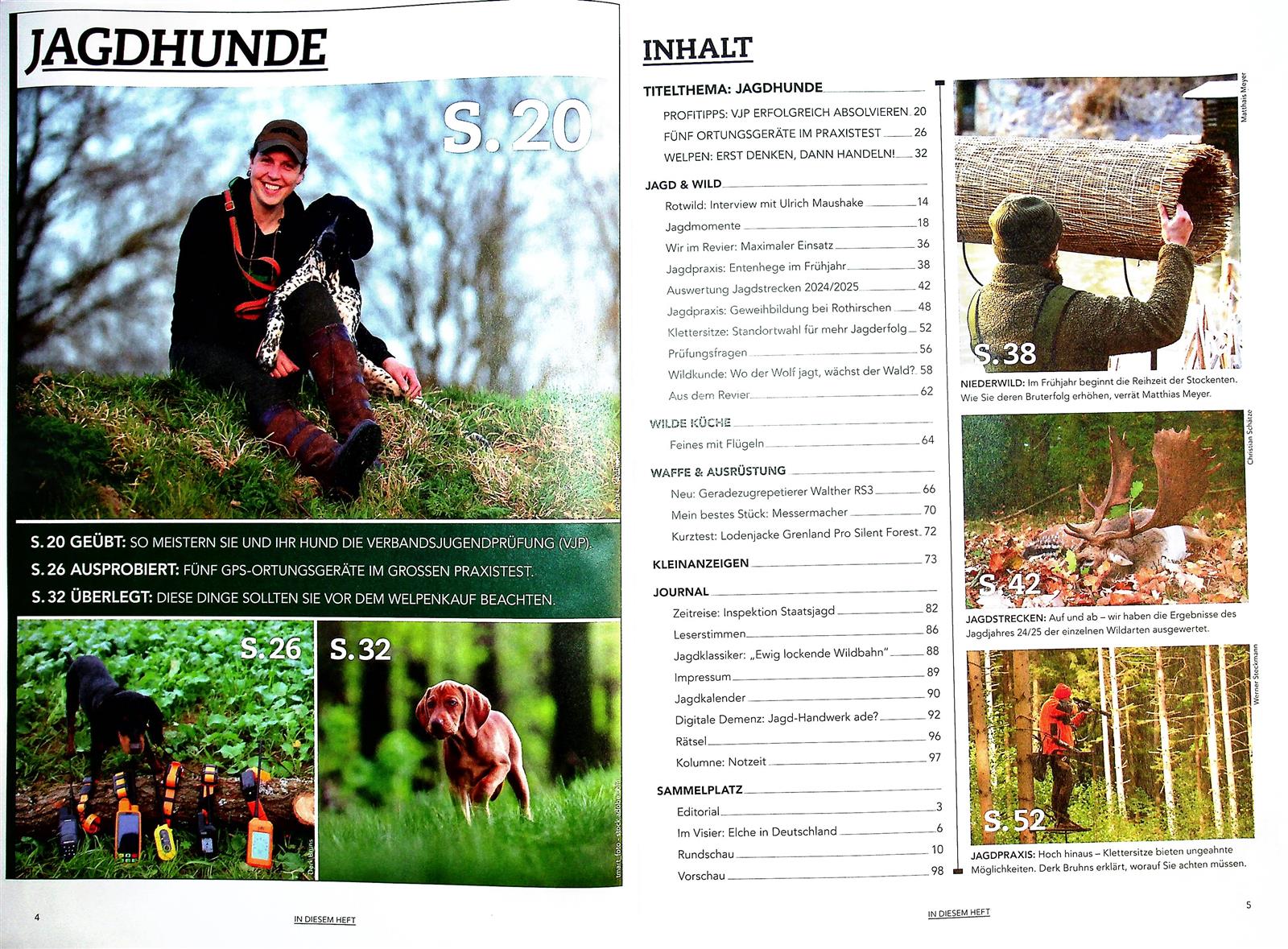 unsere Jagd beinhaltet jede Menge Reportagen und fundierte Hintergrundberichte, die einen engagierten und kritischen Einblick in den Jagdsport bieten. Der Blick auf die schönsten Seiten der Jagdkultur und beeindruckende und hochwertige Naturbilder bringen den Leser des Magazins jeden Monat aufs Neue ins Schwärmen. Im Mittelpunkt stehen die praktische Jagdausübung, Wildverwertung, Revierarbeiten, Wildbiologie, Jagdhundewesen, sowie die Themen Waffen und Ausrüstung. Durch fundierte Artikel, die präzise und sachlich formuliert sind, gibt unsere Jagd eine Chance auf eine eigene Meinungsbildung zu allen Themenbereichen der Jagd.