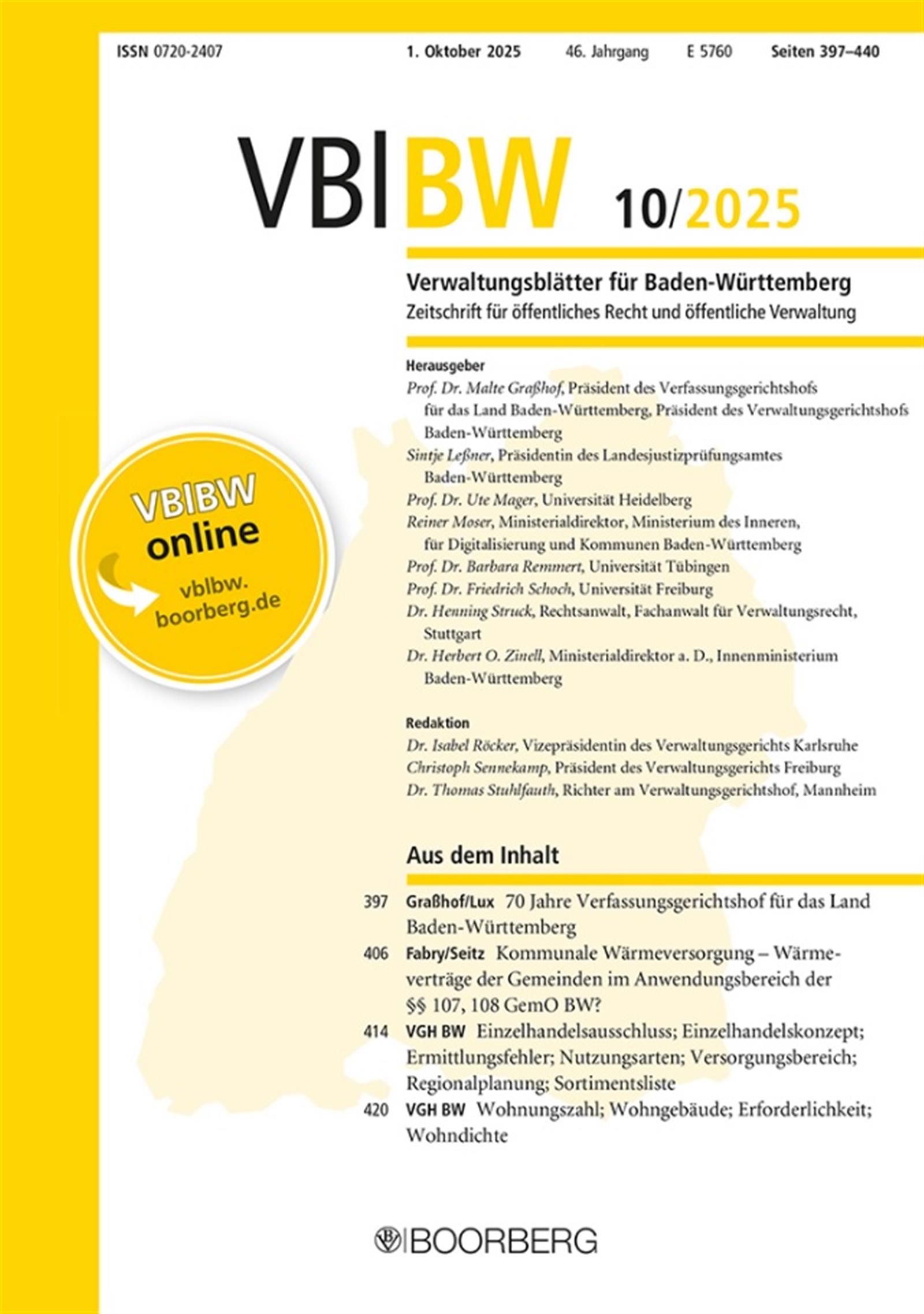 Die »Verwaltungsblätter für Baden-Württemberg« sind eine Fachzeitschrift mit wissenschaftlichem Anspruch für das öffentliche Recht und die öffentliche Verwaltung in Baden-Württemberg.