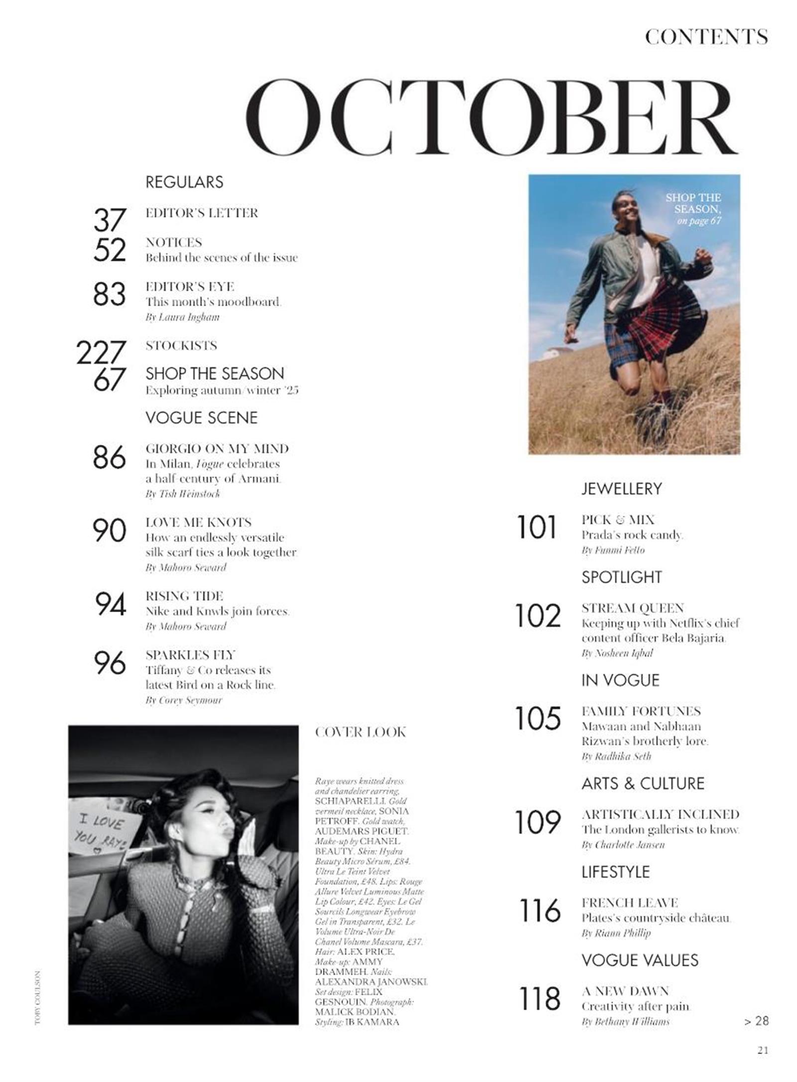 Die Zeitschrift Vogue (UK) bietet eine Vielzahl von Inhalten, die sich auf Mode, Schönheit und Lifestyle konzentrieren. In jeder Ausgabe finden Leserinnen und Leser aktuelle Modetrends, exklusive Interviews mit Designern und Prominenten sowie inspirierende Fotostrecken, die die neuesten Styles präsentieren. Darüber hinaus behandelt die Zeitschrift Themen wie Wellness, Gesundheit und gesellschaftliche Entwicklungen, die für die moderne Frau von Bedeutung sind. Regelmäßige Kolumnen zu Beauty-Tipps, Make-up-Reviews und Stilratgeber ergänzen das Angebot. Auch kulturelle Beiträge über Kunst, Literatur und Reisen bieten einen umfassenden Blick auf die Welt. Mit ihrem eleganten Layout und hochwertigen Inhalten ist Vogue (UK) eine unverzichtbare Lektüre für Modebegeisterte und trendbewusste Frauen, die stets auf der Suche nach Inspiration sind.