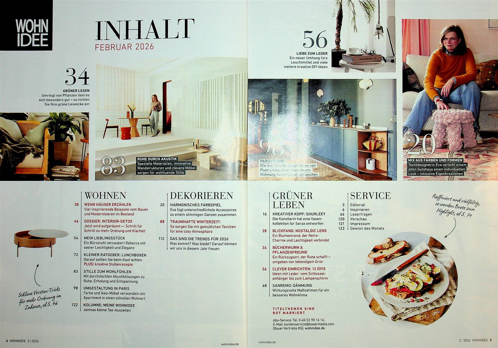Kennzeichnend für jede Ausgabe der Wohnidee sind die liebevoll gestalteten Fotostrecken und die hohe Umsetzbarkeit der vorgestellten Ideen und Anregungen.