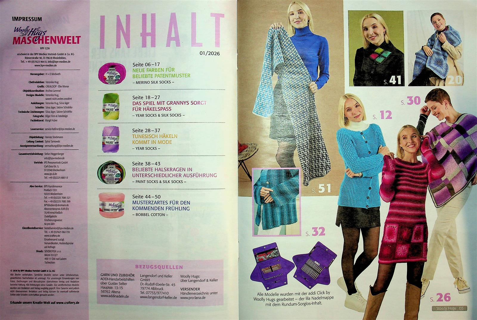 Woolly Hugs Maschenwelt fällt in die Kategorie der Handarbeits Zeitschriften. Strickmode für 4 Jahreszeiten finden Sie in der Verena Stricktrends. The Knitter ist ein Magazin für Fortgeschrittene und präsentiert Designer Modelle zum Nacharbeiten.