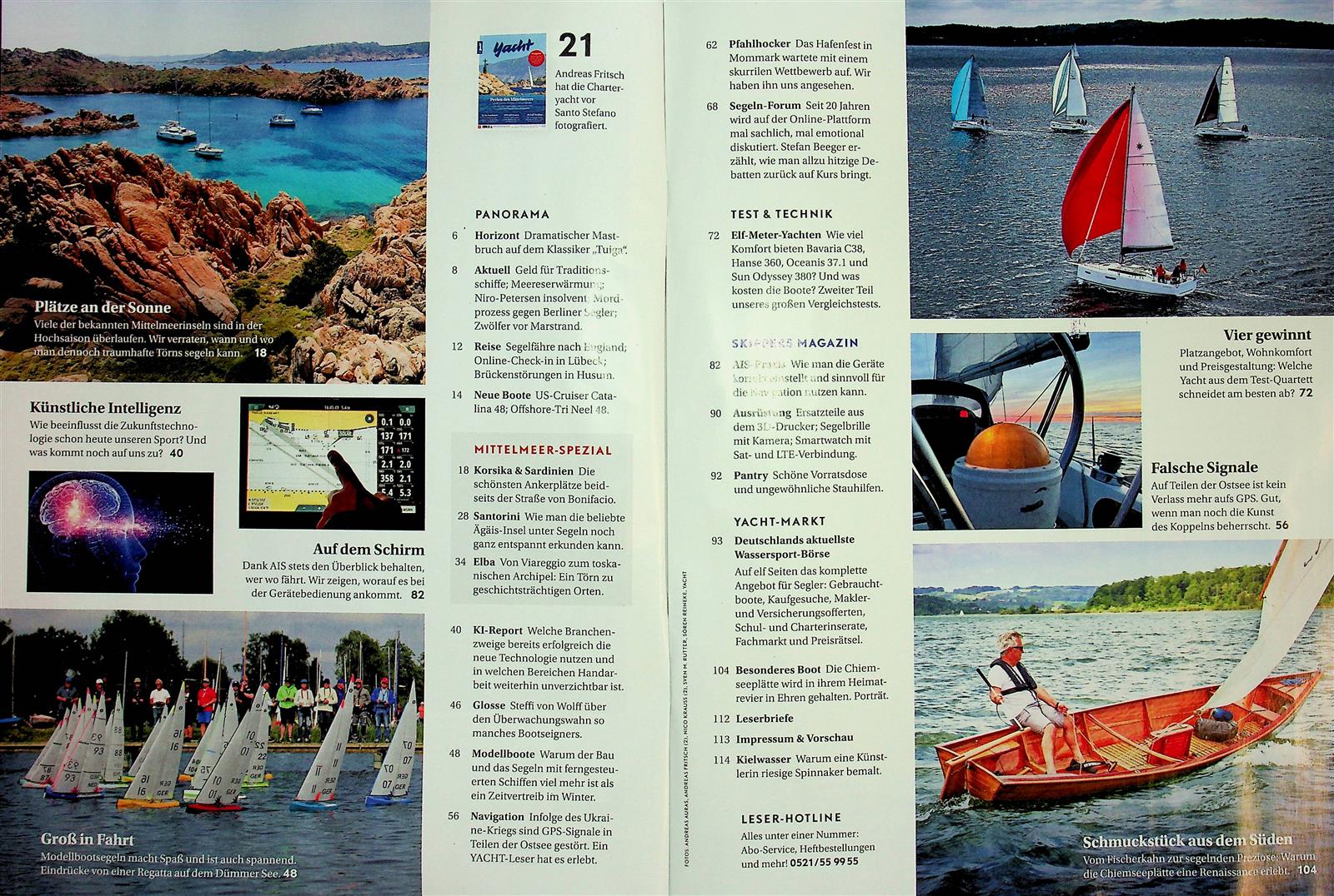 Yacht erscheint vierzehntäglich und wurde bereits 1904 ins Leben gerufen. In der Zeitschrift geht es vor allem um das Thema Segeln bzw. das Fahrtensegeln.