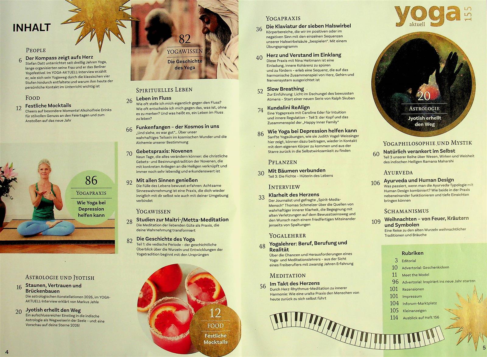 Die Zeitschrift Yoga Aktuell bietet eine Vielzahl an Inhalten im Bereich des Yoga. Leser können sich auf interessante Artikel zu verschiedenen Aspekten des Yoga, wie Asanas, Atemtechniken, Meditation und Gesundheit freuen. Yoga Aktuell informiert über aktuelle Trends, Veranstaltungen und Kurse im Yoga-Bereich. Zudem werden Interviews mit renommierten Yogalehrern und -lehrerinnen sowie Erfahrungsberichte von Yoga-Praktizierenden veröffentlicht. Die Zeitschrift bietet somit eine umfassende Informationsquelle für alle, die sich für Yoga interessieren und ihre Praxis vertiefen möchten. Die Zeitschrift ist eine wertvolle Informationsquelle für alle, die ihre Yoga-Praxis vertiefen und ihr Wissen über die verschiedenen Aspekte des Yoga erweitern möchten. Durch die fundierten Artikel und praktischen Anleitungen können Leserinnen und Leser ihr Verständnis für Yoga vertiefen und ihre Praxis verbessern. Yoga Aktuell bietet somit einen umfassenden Überblick über die Welt des Yoga und trägt dazu bei, die Leserinnen und Leser auf ihrem spirituellen Weg zu unterstützen.