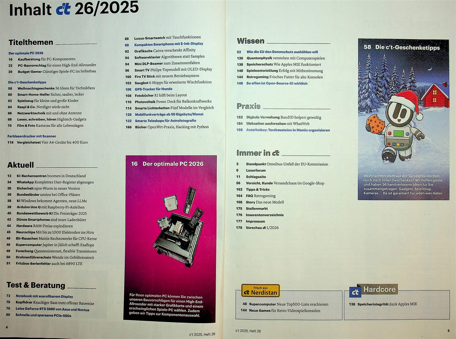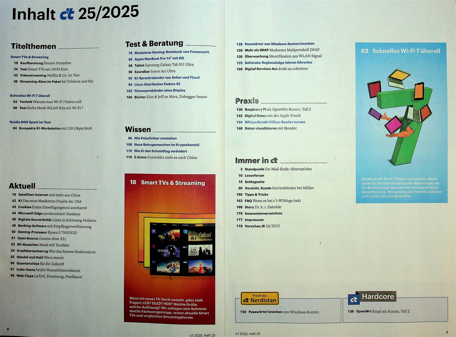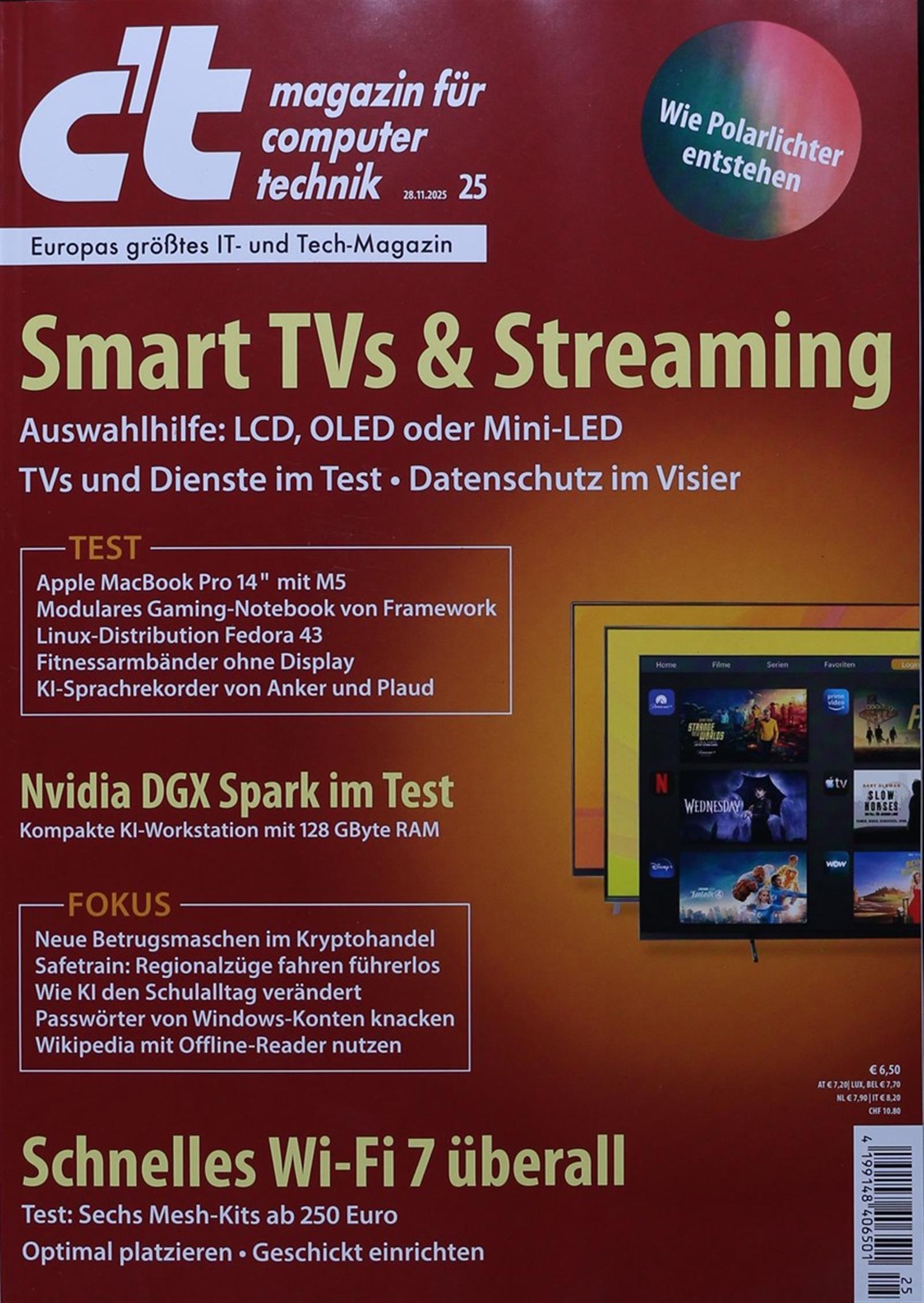 Bevor ich ein Abo abgeschlossen habe, habe ich eine c`t Zeitschrift gekauft und den Inhalt studiert. Ich wollte mehr wissen, als nur elektronische Geräte im Vergleich oder was Preis-Leistung angeht. Ich wollte mehr über das Innenleben des Computers, Laptops wissen und es ist auch immer spannend, was über Android-Geräte zu lesen. Es bietet Wissen über Hardware bis zu Software. Wenn sie auch über Solches interessiert sind, dann kann ich es auf jeden Fall weiterempfehlen.