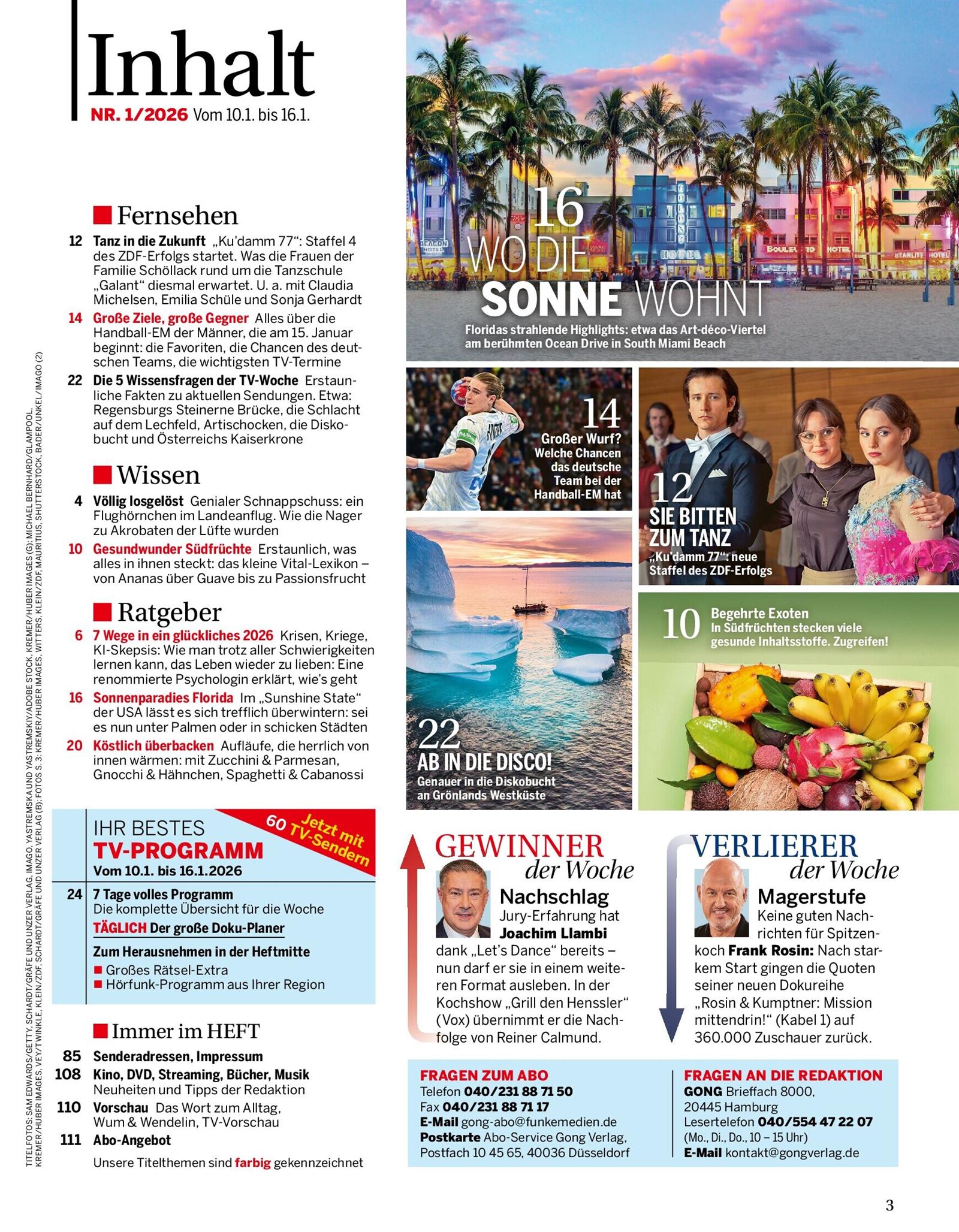 Der Gong ist für mich die beste Fernsehzeitung sehr Übersichtlich gute Themen und Kreuzworträtsel alles was eine Zeitschrift braucht.Ich kann sie nur empfehlen.