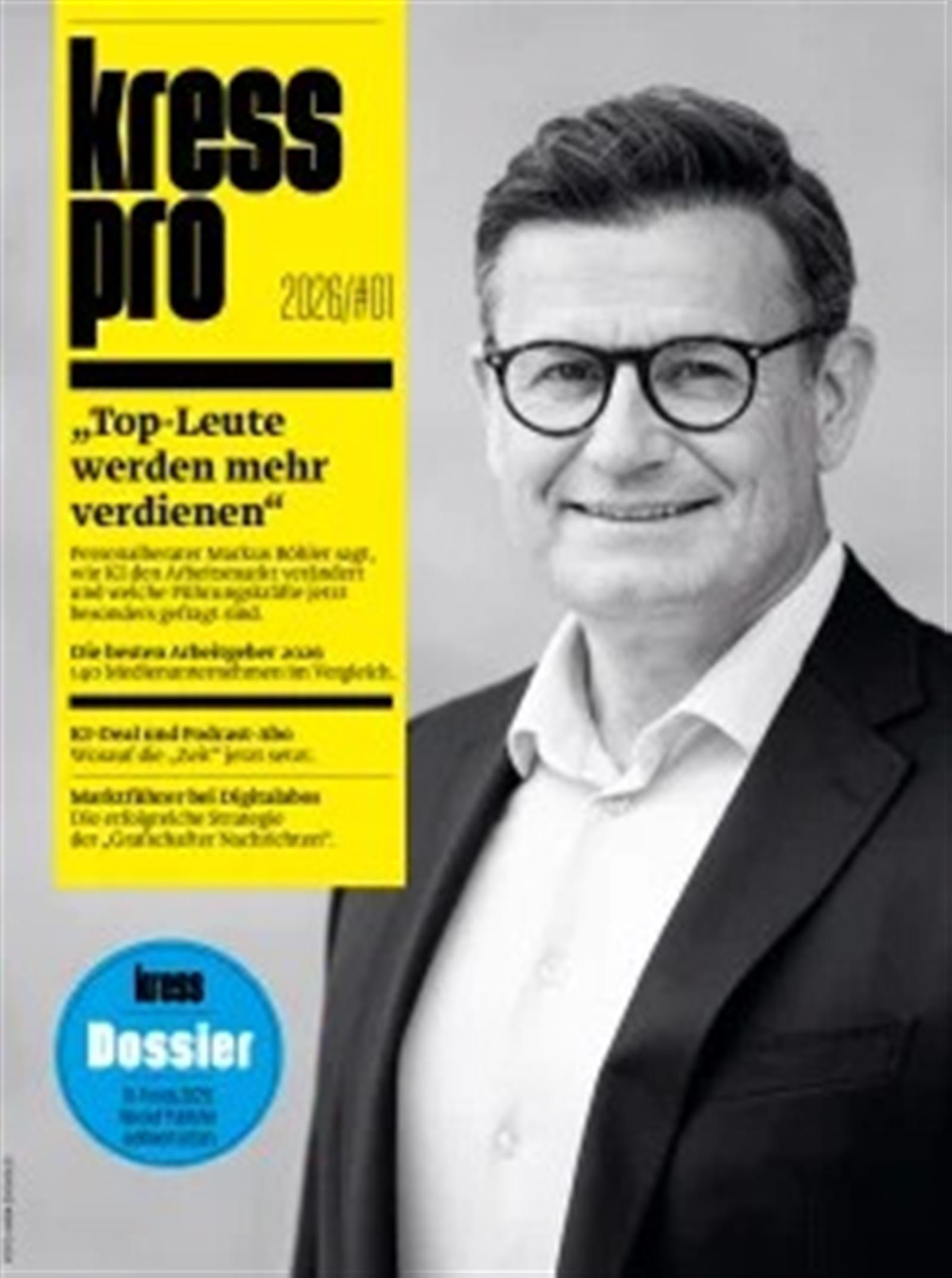 kress pro berichtet als professioneller Begleiter für Profis über aktuelle Geschehnisse, Personen und Kennzahlen aus der Medien- und Kommunikationsbranche. Die Leser von kress pro sind Top-Entscheider in Medien, Marketingabteilungen und Agenturen.