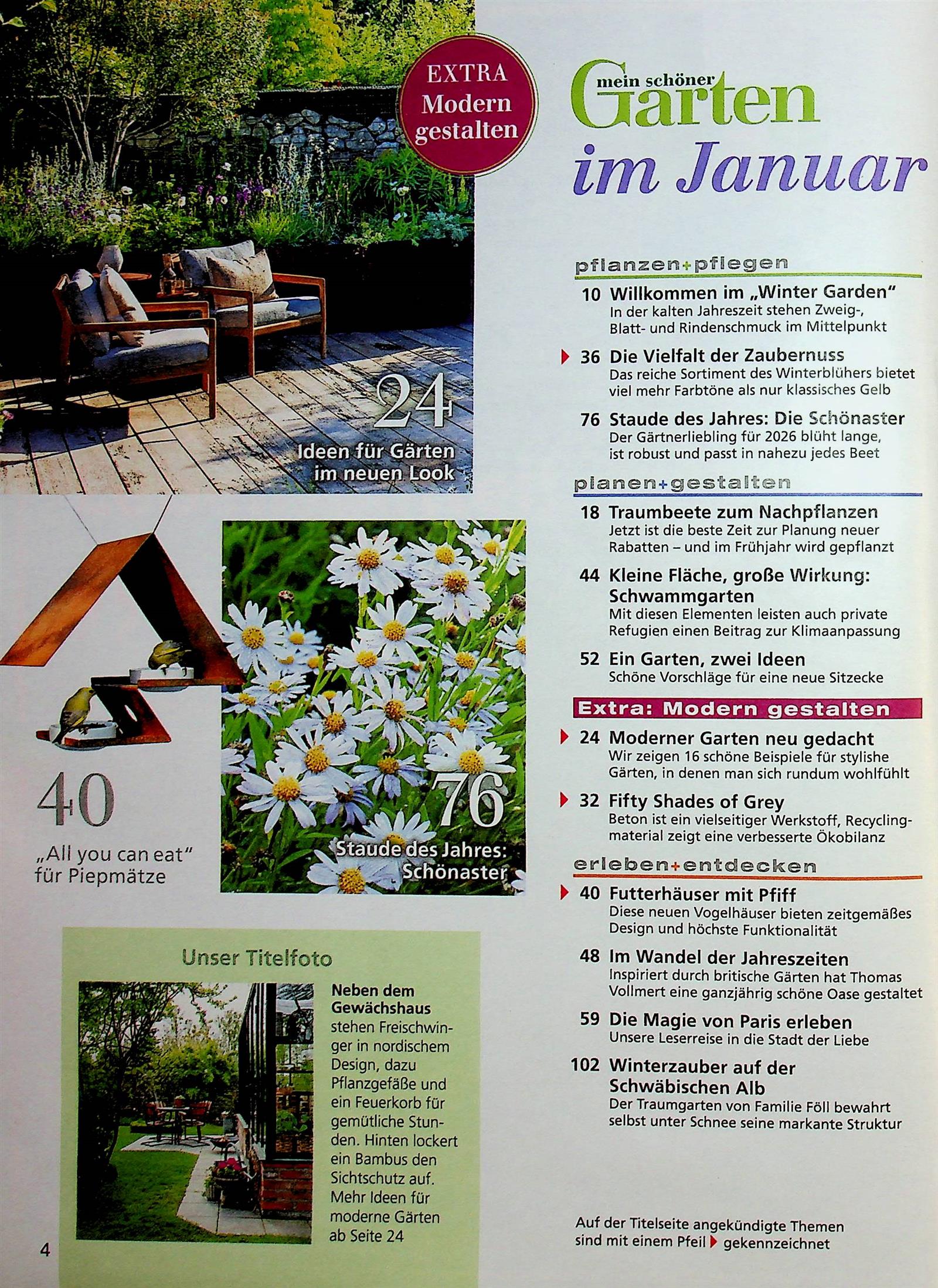 Mein schöner Garten erscheint bei Hubert Burda Media, einem der größten Medienhäuser Deutschlands mit über 600 Marken. Burda steht für Qualität, Innovationskraft und Lebensnähe – von Lifestyle über Technik bis hin zu Garten und Genuss. Mit Titeln wie BUNTE, TV Spielfilm oder CHIP erreicht Burda Millionen Leser.
