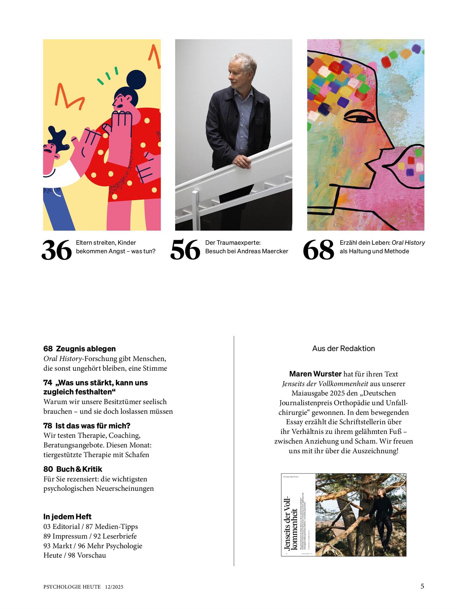 Die Zeitschrift bietet praxisnahe Tipps von Experten, die das eigene Leben und zwischenmenschliche Beziehungen verbessern. Auch Interviews, Rezensionen und wissenschaftlich fundierte Artikel sind fester Bestandteil des Magazins, sodass Leser immer über die neuesten Entwicklungen informiert bleiben.